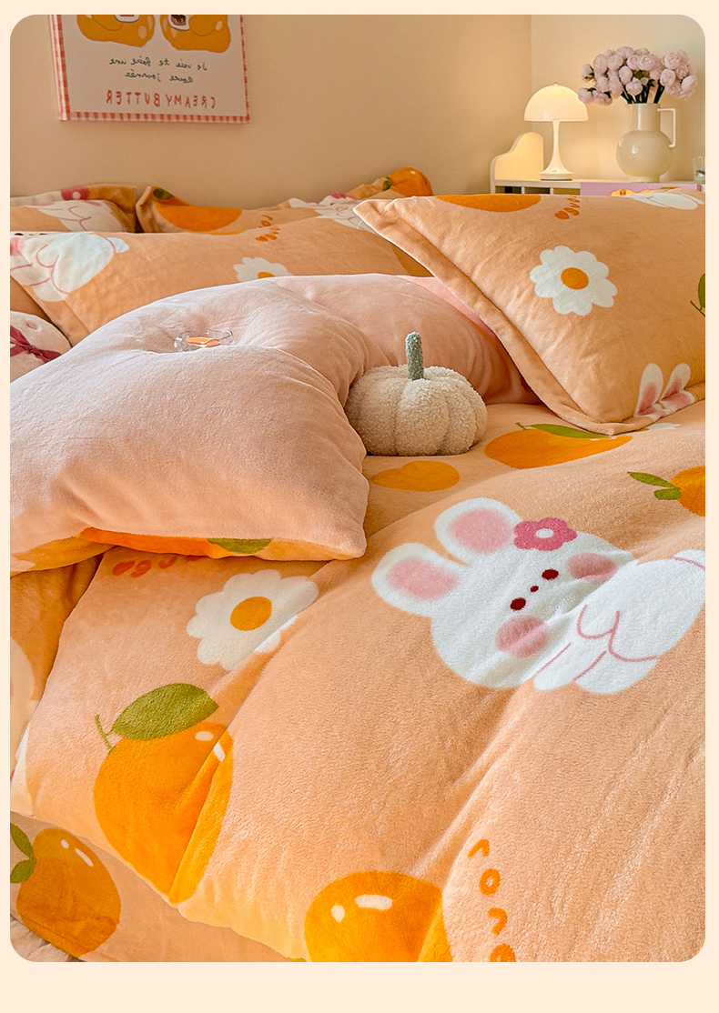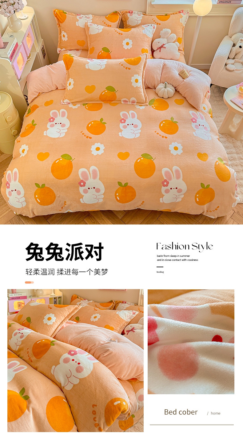 名兮家居 2025秋冬新款加厚高克重牛奶绒单被套 兔兔派对