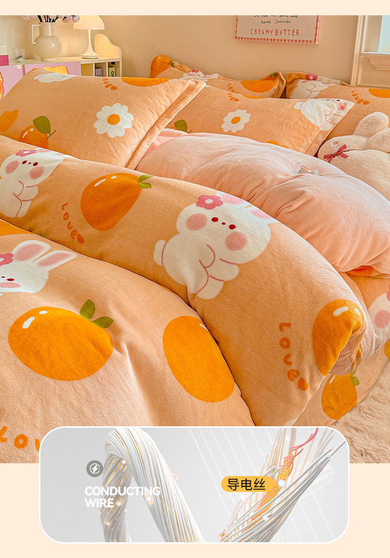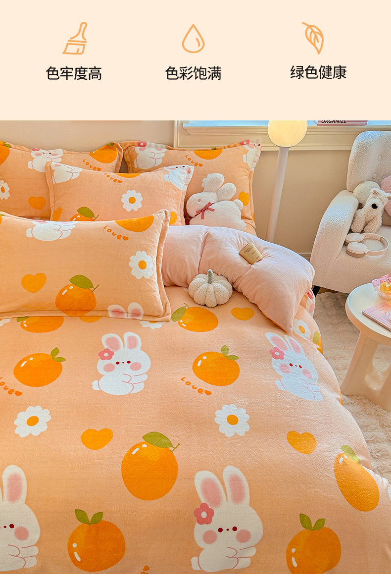 • 91家纺网 家纺一手货源 找家纺 名兮家居 2025秋冬新款加厚高克重牛奶绒单被套 兔兔派对