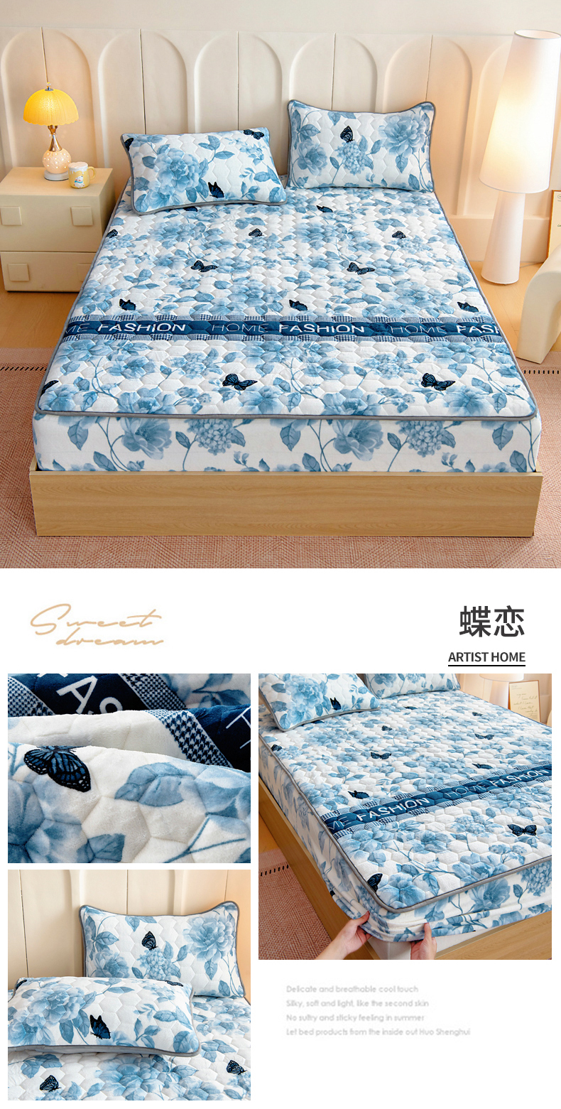 • 91家纺网 家纺一手货源 找家纺 情煊家纺 2025新款保暖牛奶绒夹棉床笠-床笠款 三生有杏
