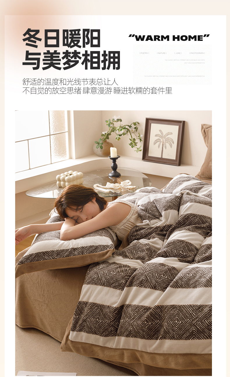 (总)趣色家纺 2025秋冬新款无印风宽边立体烂花牛奶绒四件套