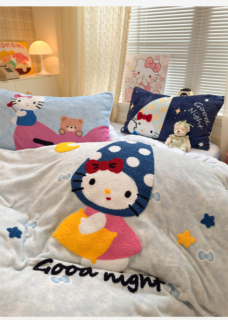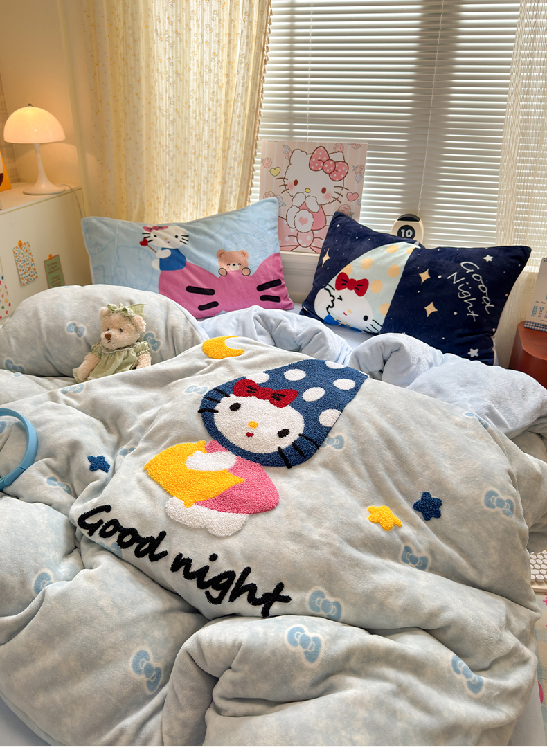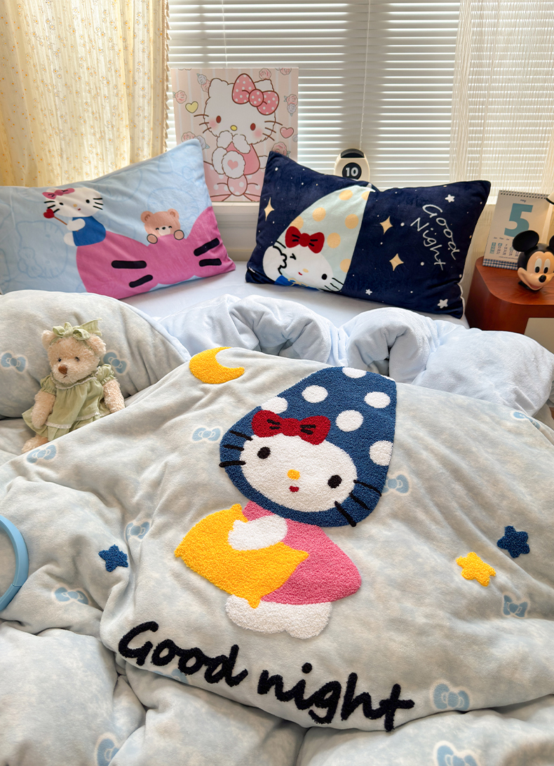 (总)罗亿家纺 2025新款高克重200g牛奶绒数码印花毛巾绣卡通四件套(小红书推荐)提供买家秀