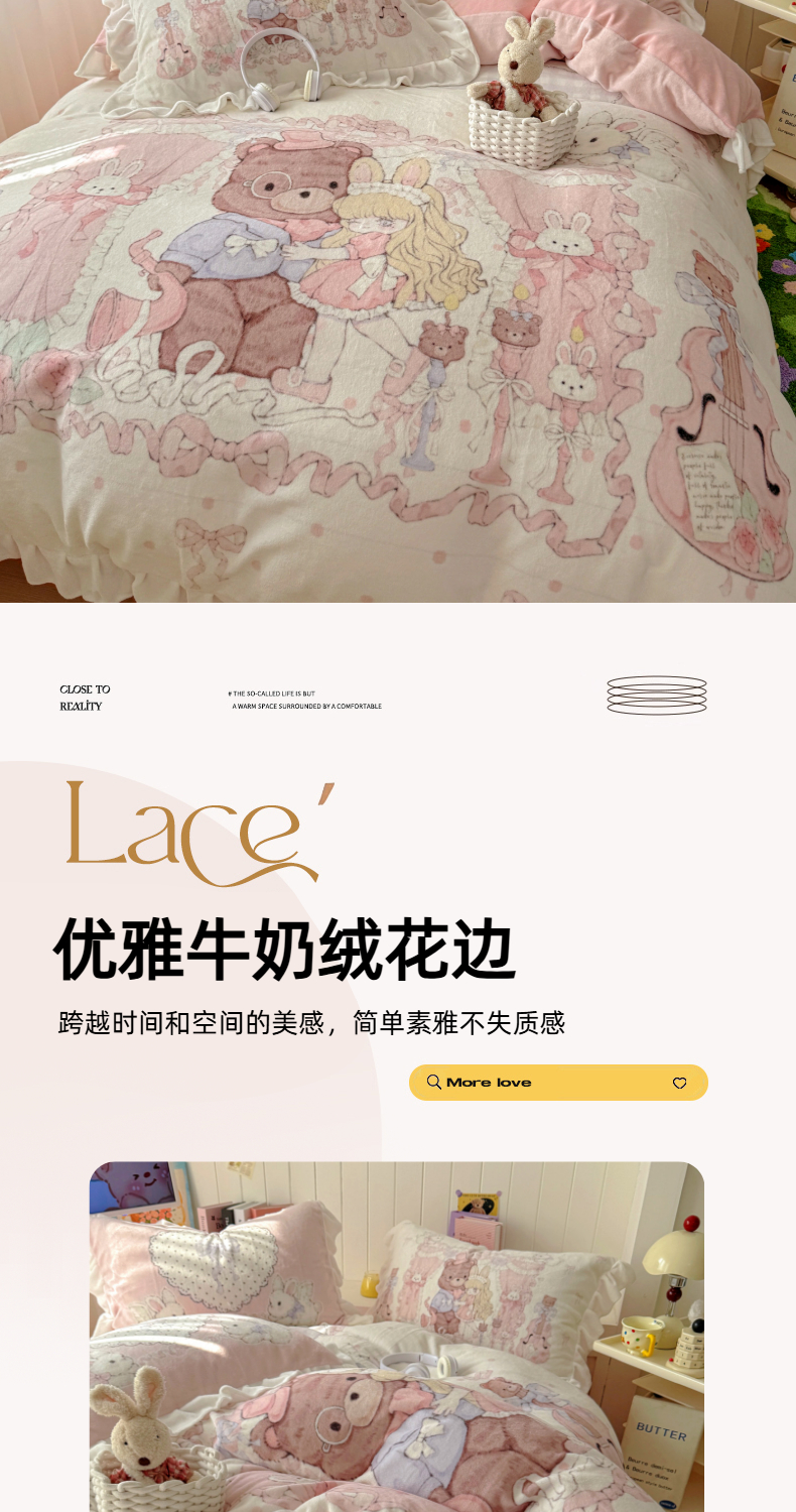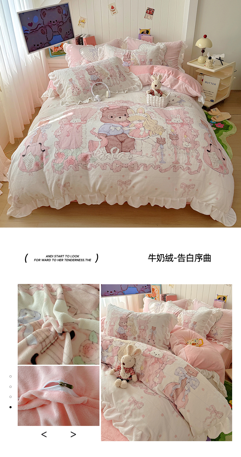 当前位置: 91家纺网 > 商品网购 > 床品套件 > 四件套 > 牛奶绒四件套 > 希诺家居 2025新款牛奶绒花边原创专版洛丽塔风少女心萝莉风大版牛奶绒四件套被套 牛奶绒-爱丽丝