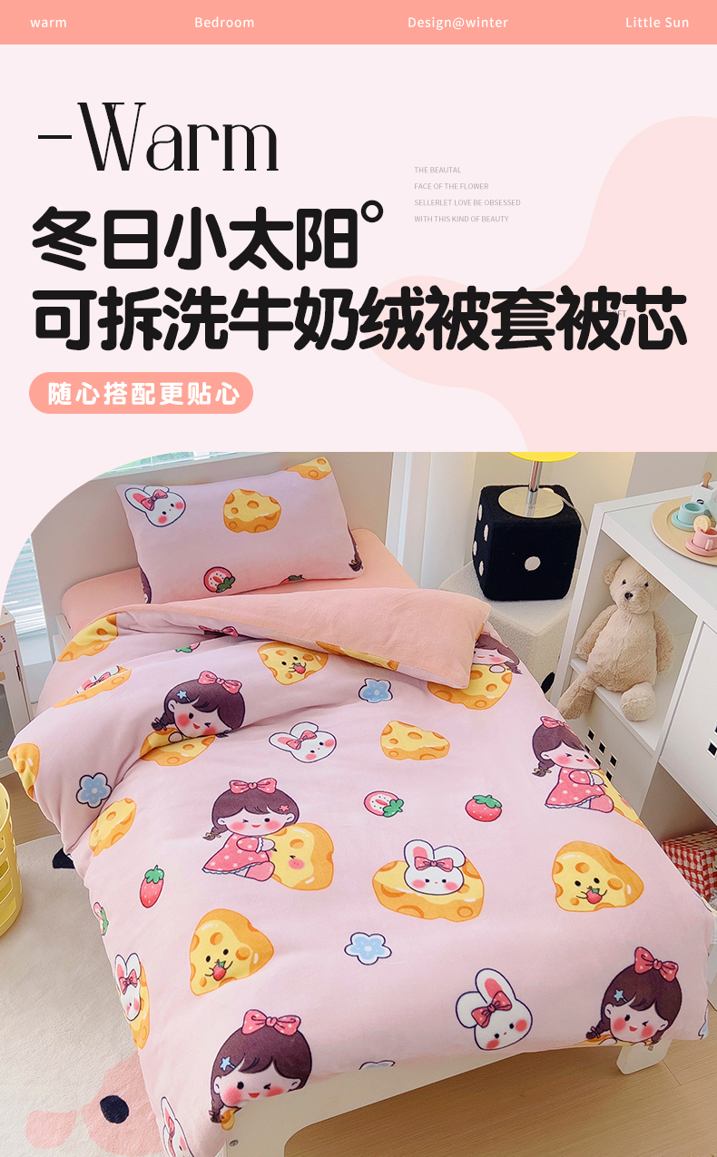 当前位置: 91家纺网 > 商品网购 > 婴童用品 > 婴童三件套 > 鱼宝 2025新款牛奶绒可拆卸被套被芯幼儿园被子 奶酪