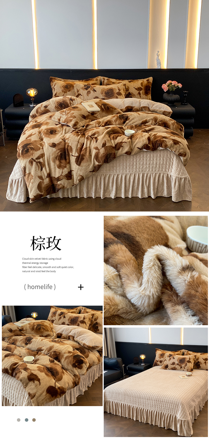 商品名称:美伦美焕 2025新款直播热款高克重兔毛绒床盖款四件套 棕玫