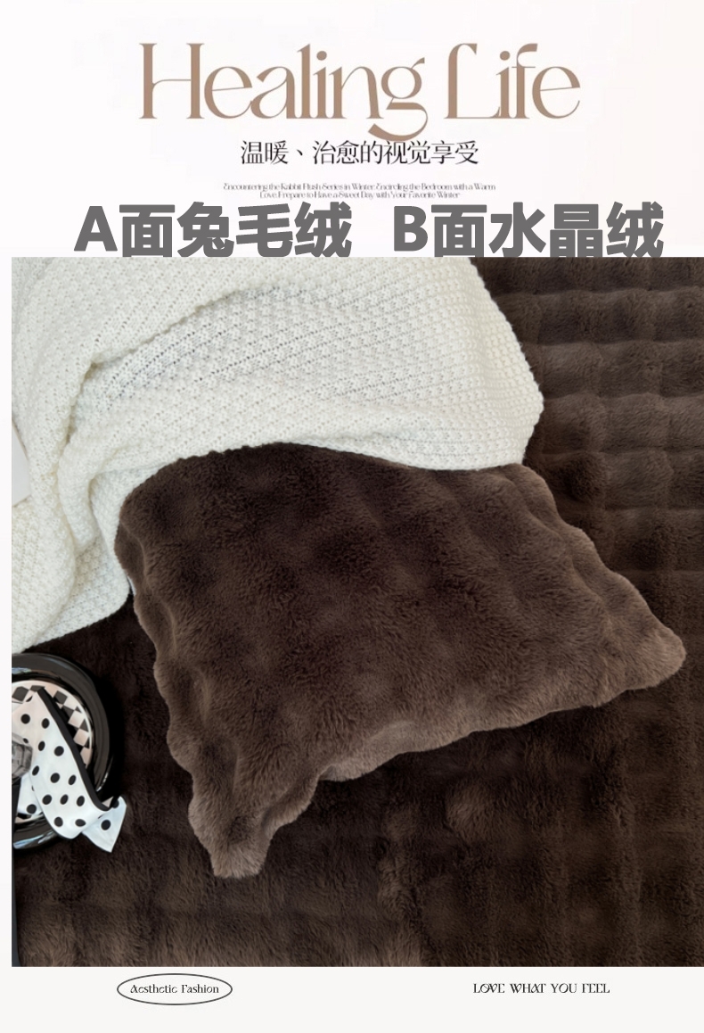 • 91家纺网 家纺一手货源 找家纺 梦舒羽 2025新款兔毛绒双人枕套牛奶绒加长情侣枕芯套雪花绒枕头套 兔毛绒泡泡-咖啡色