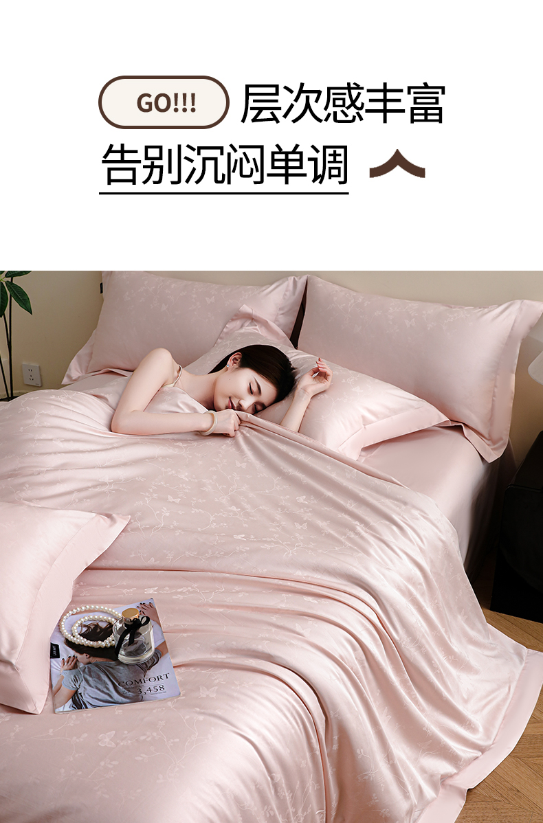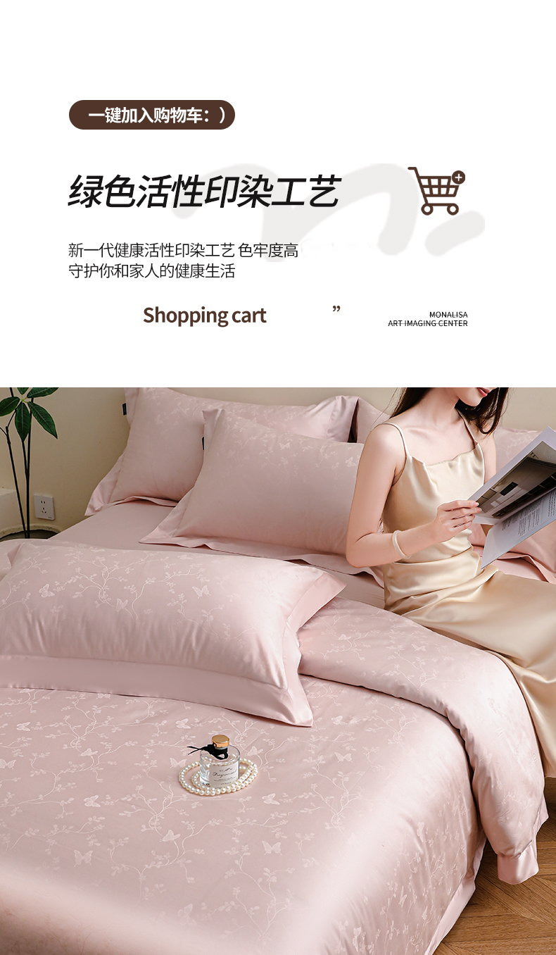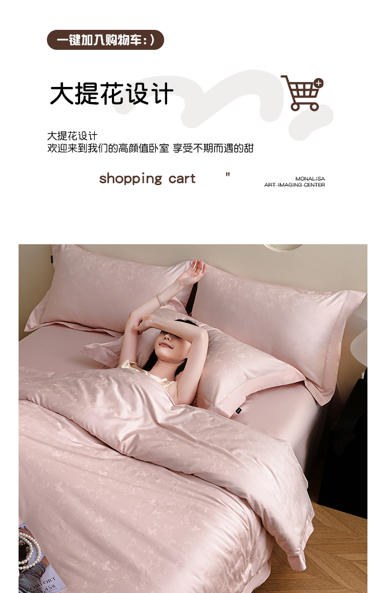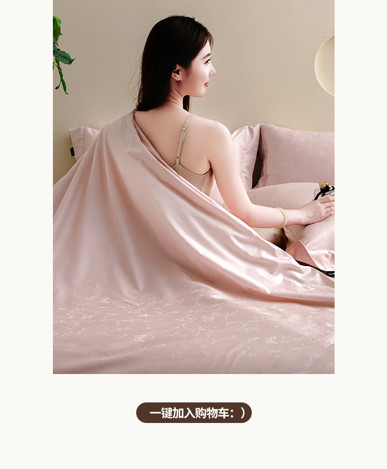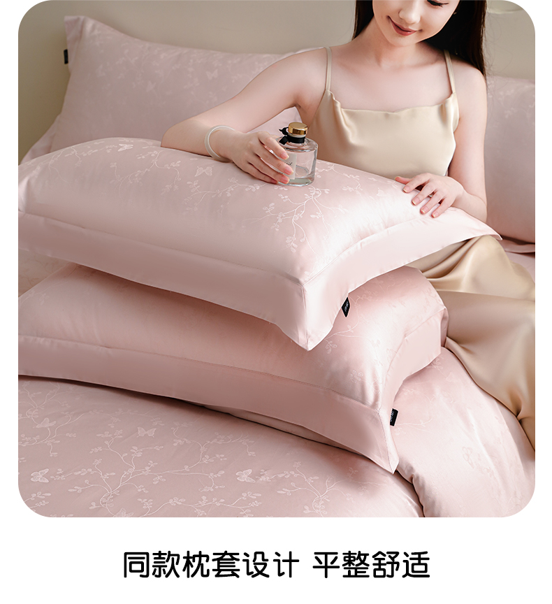 商品名称:洺兰家居 2025新款60支全棉新疆棉大提花拼角款四件套长绒棉贴边床单床笠床上用品套件专版(控价标准245加大260床笠255) 梦蝶-浅粉