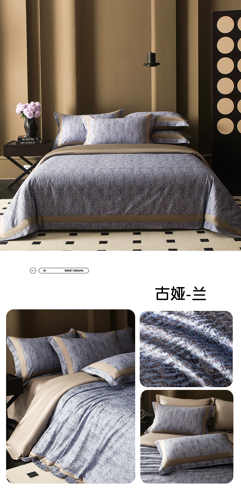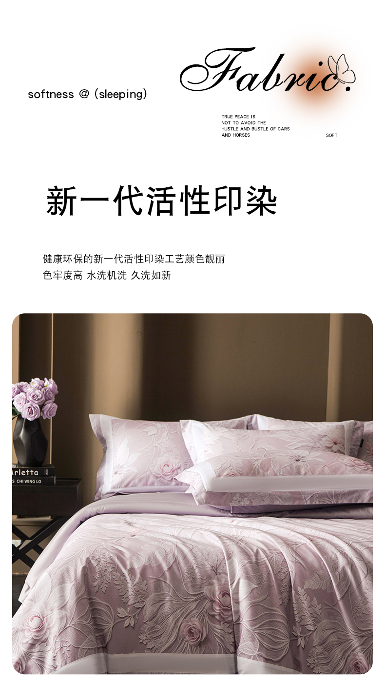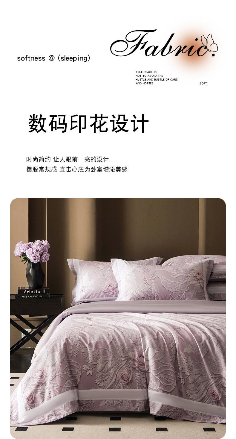 (总)洺兰家居 2026年新疆长绒棉100支天丝棉高端工艺款床单床笠四件套床上用品,淡若清香,陌上花开,羽墨