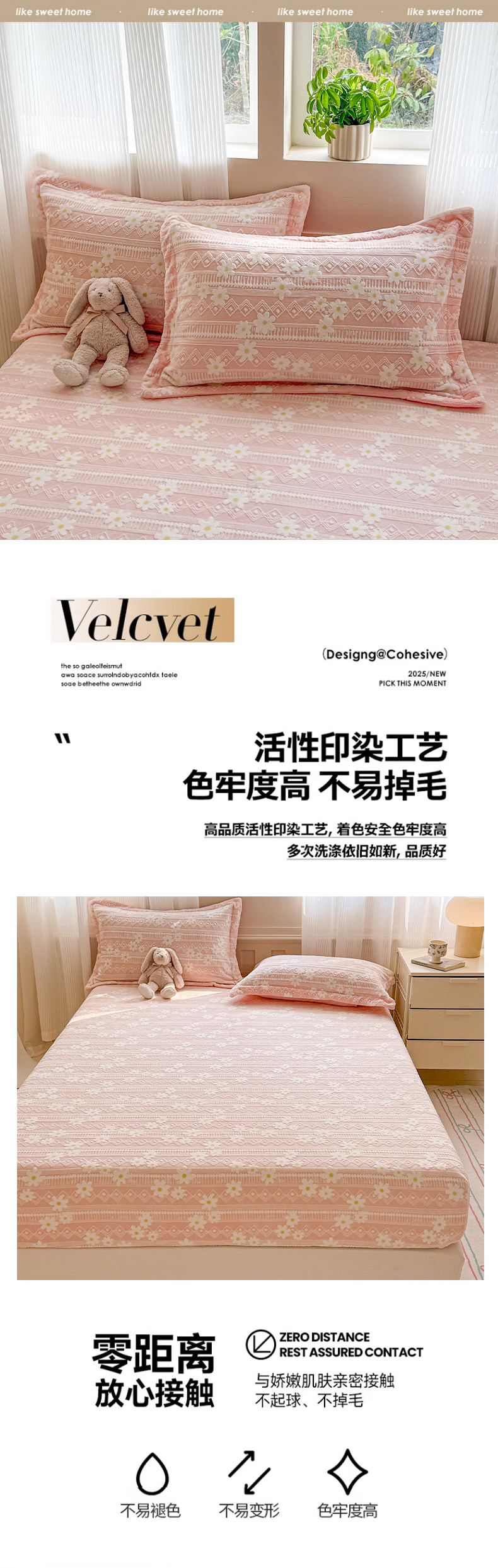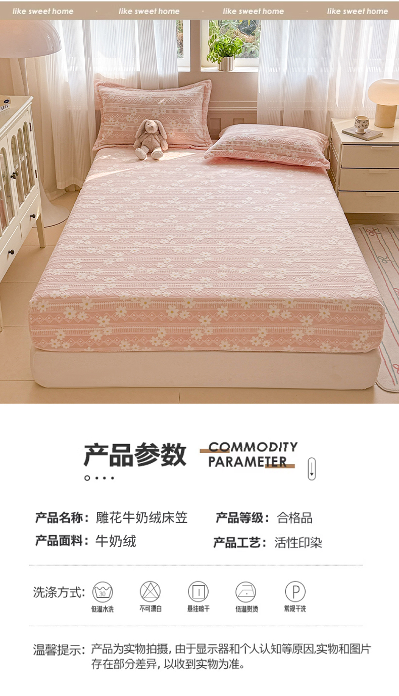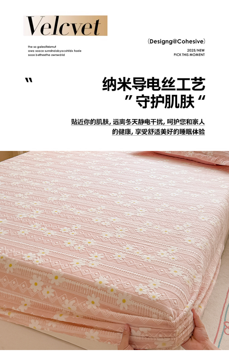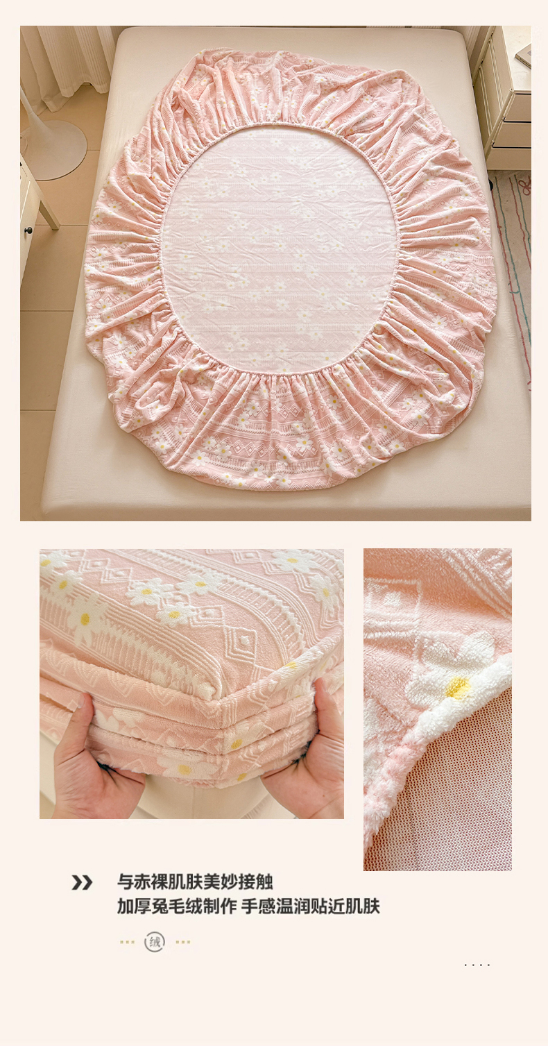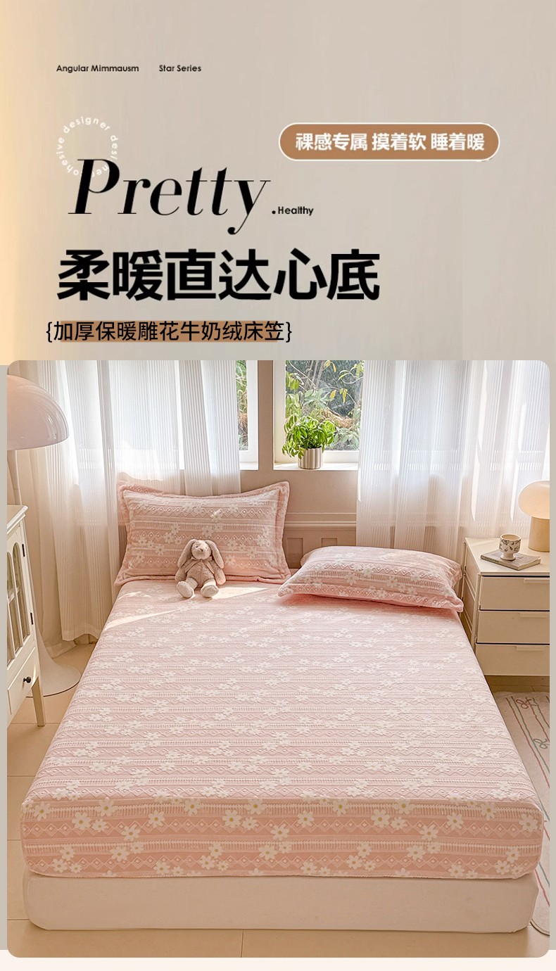 商品名称:娜娜 2025新款雕花牛奶绒烂花小翠菊单床笠系列 繁花-淡雅粉