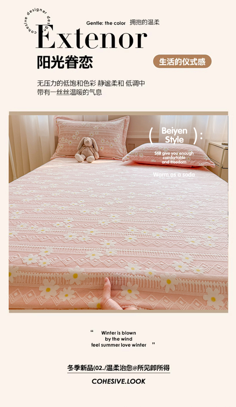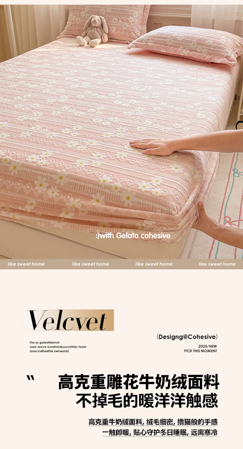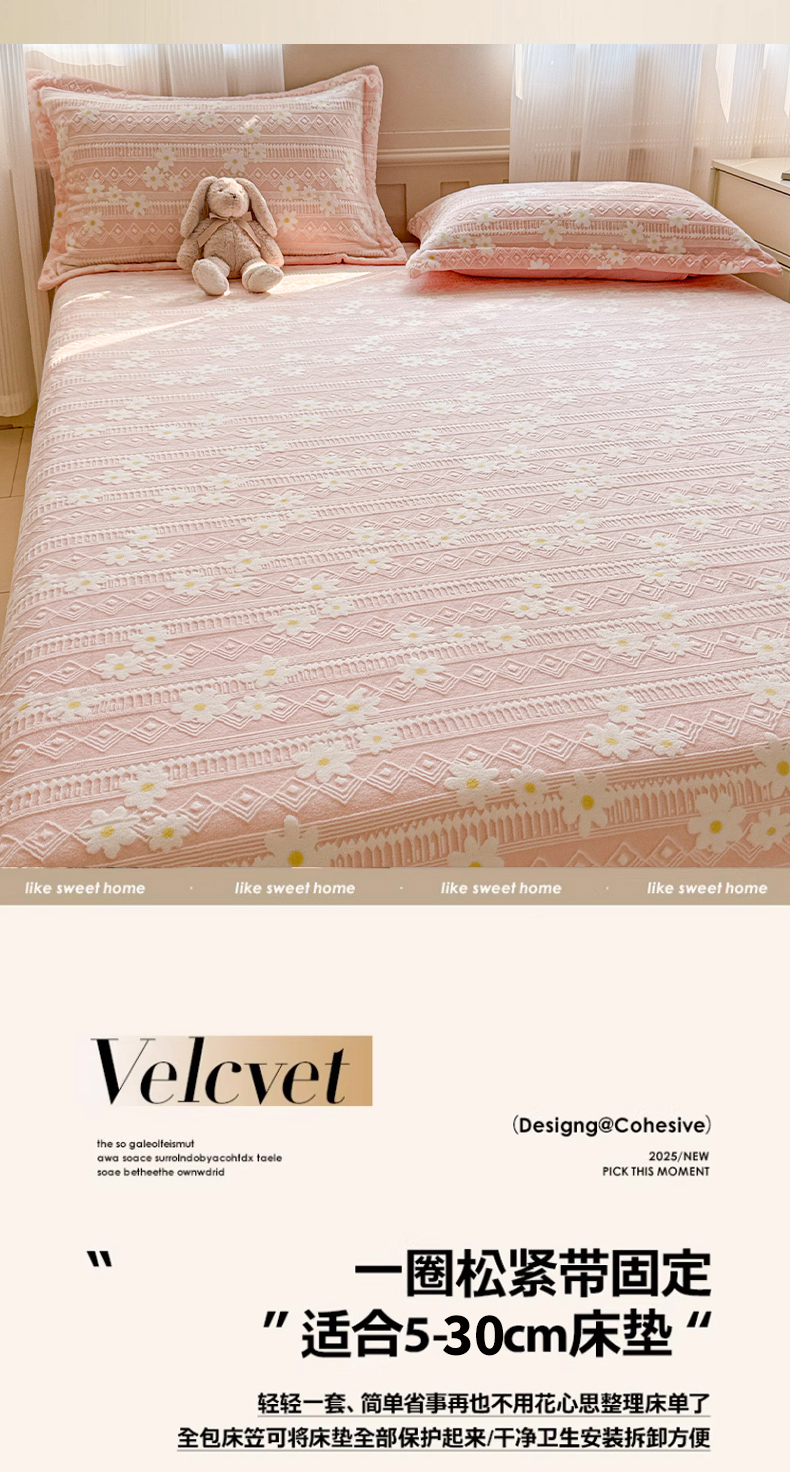 娜娜 2025新款雕花牛奶绒烂花小翠菊单床笠系列 繁花-淡雅粉