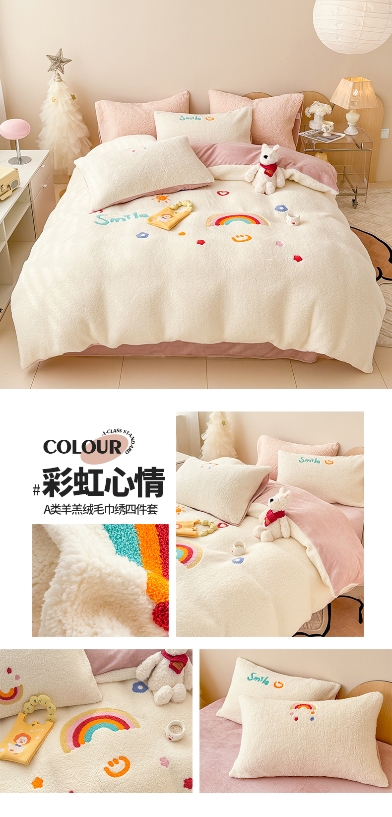 商品名称:懒猫家纺 2025新款羊羔绒毛巾绣四件套 花小兔
