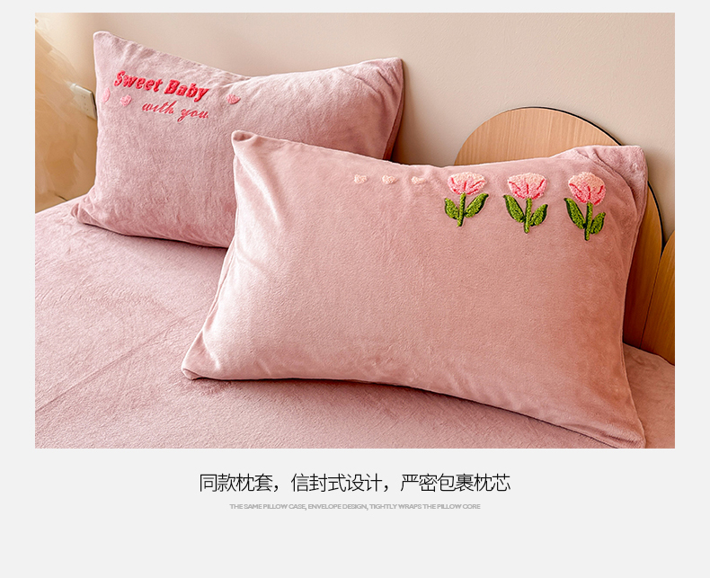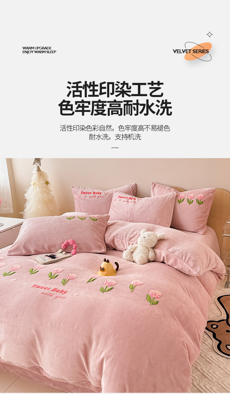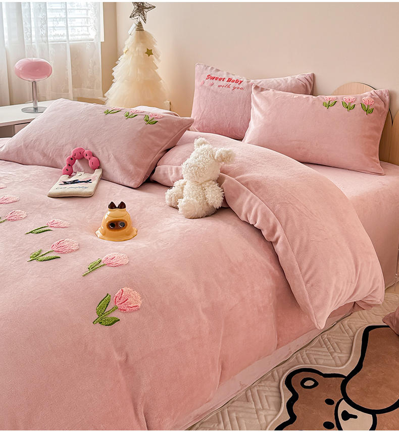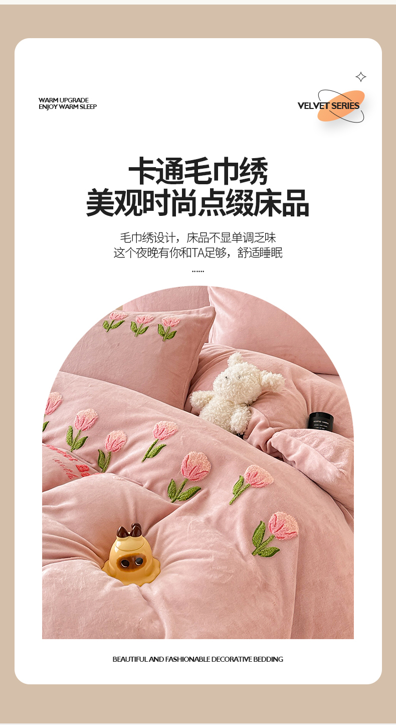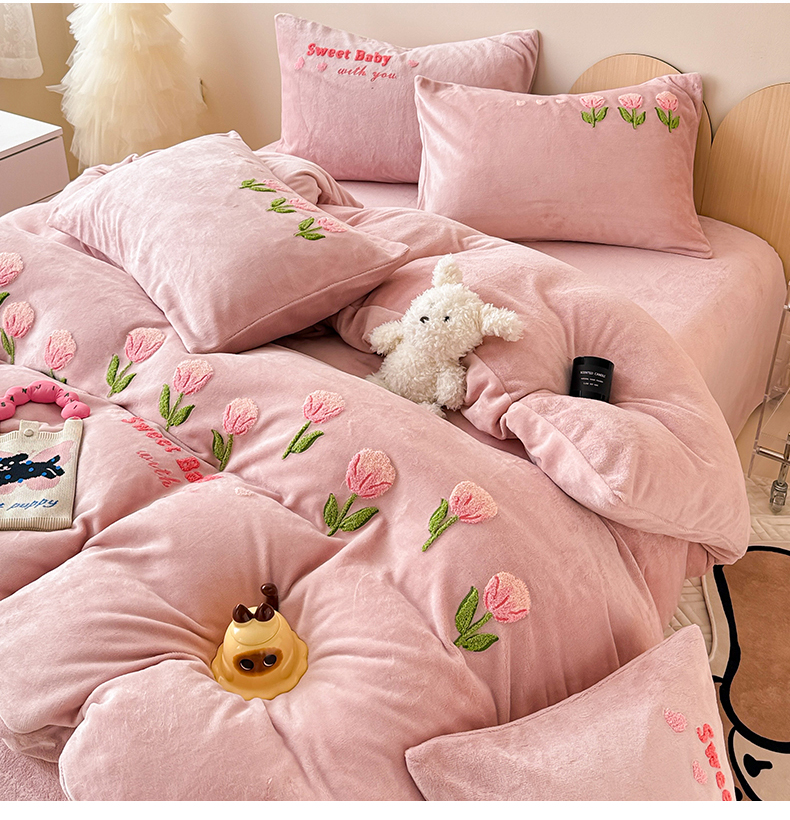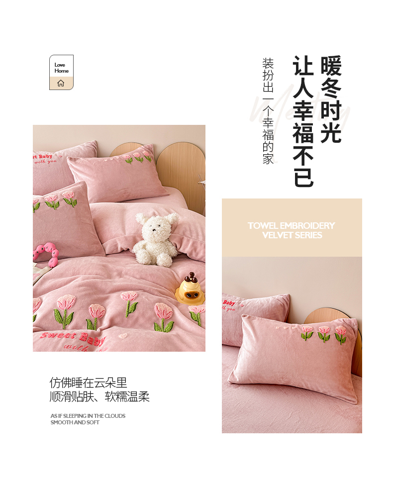 商品名称:懒猫家纺 2025新款牛奶绒毛巾绣四件套 甜蜜宝贝