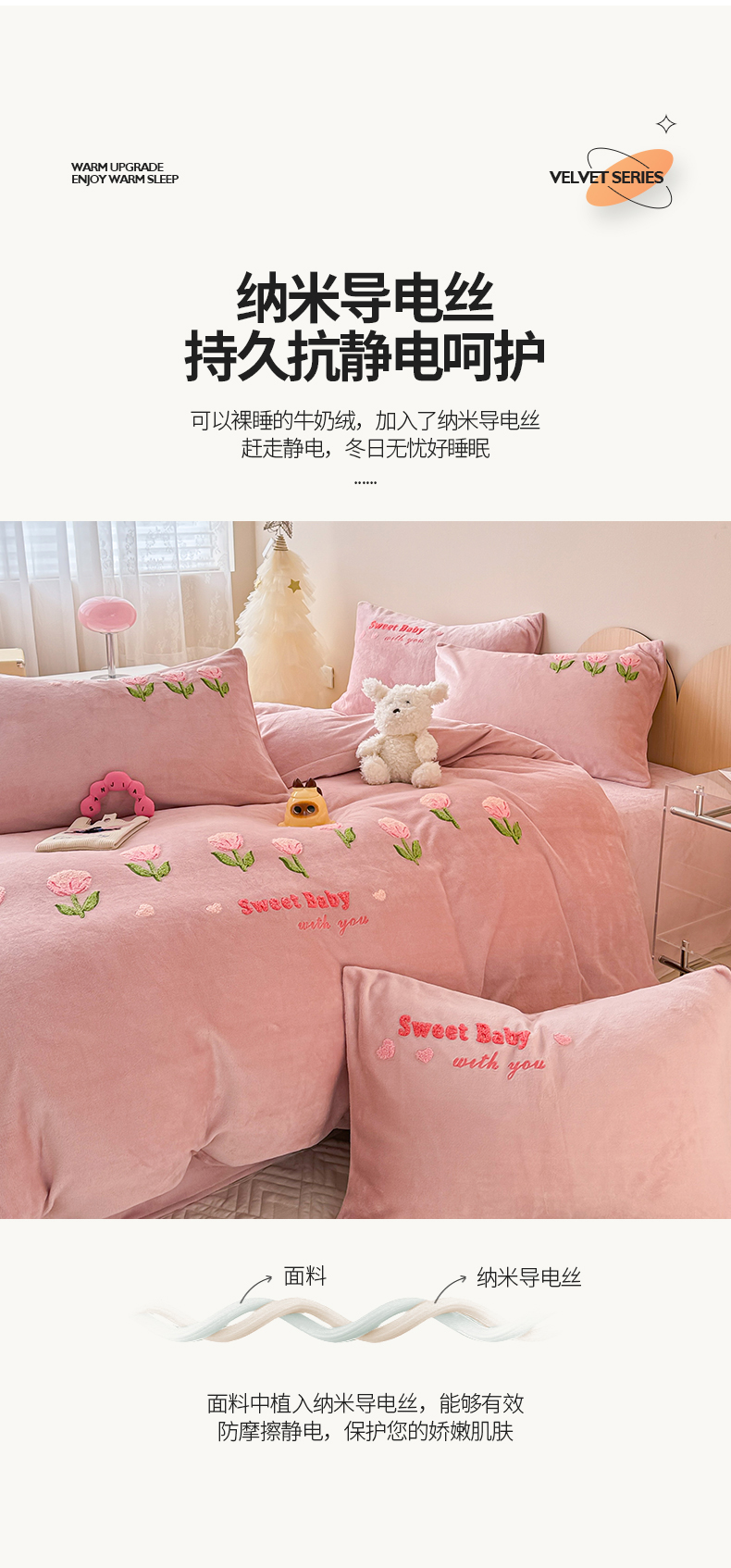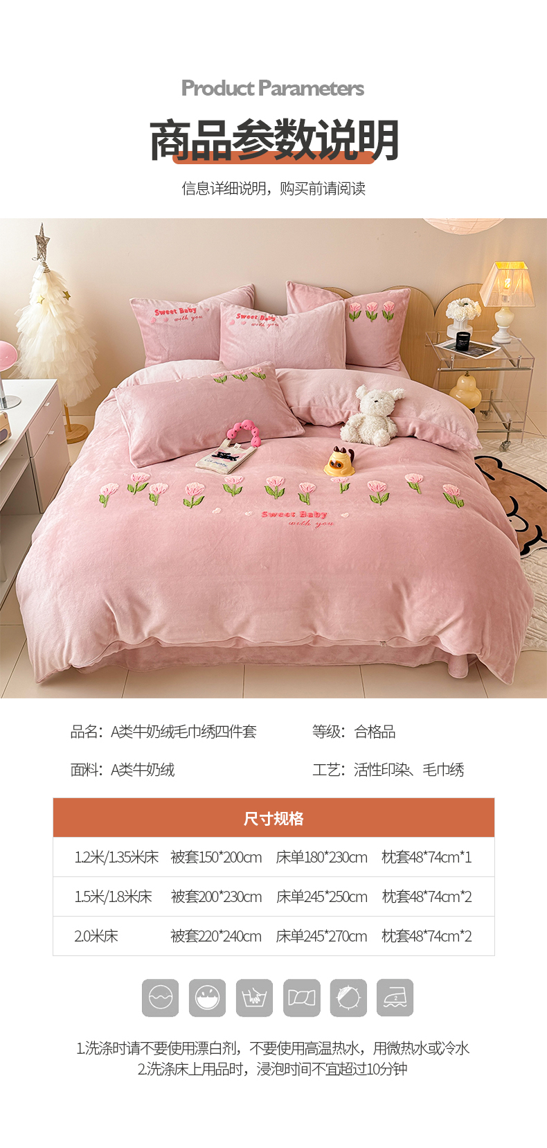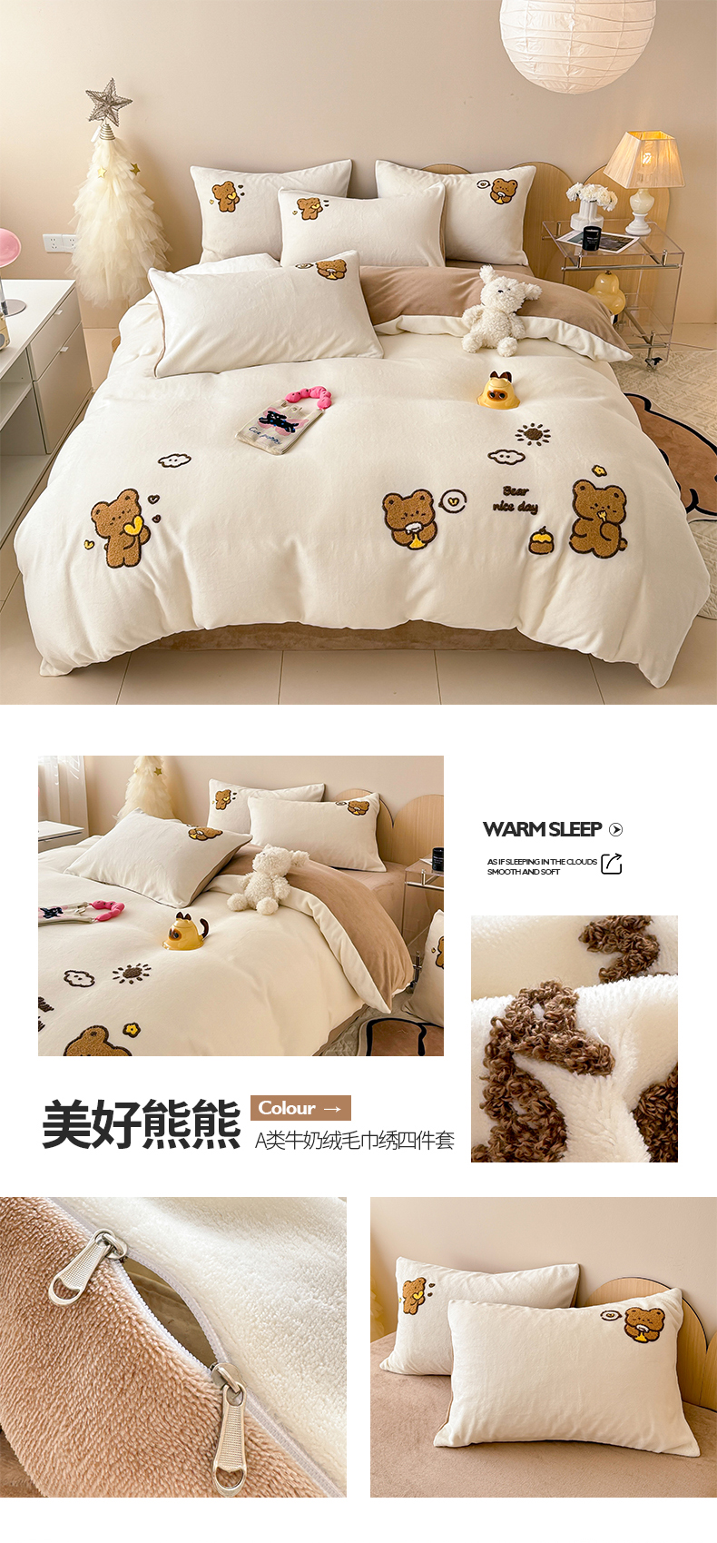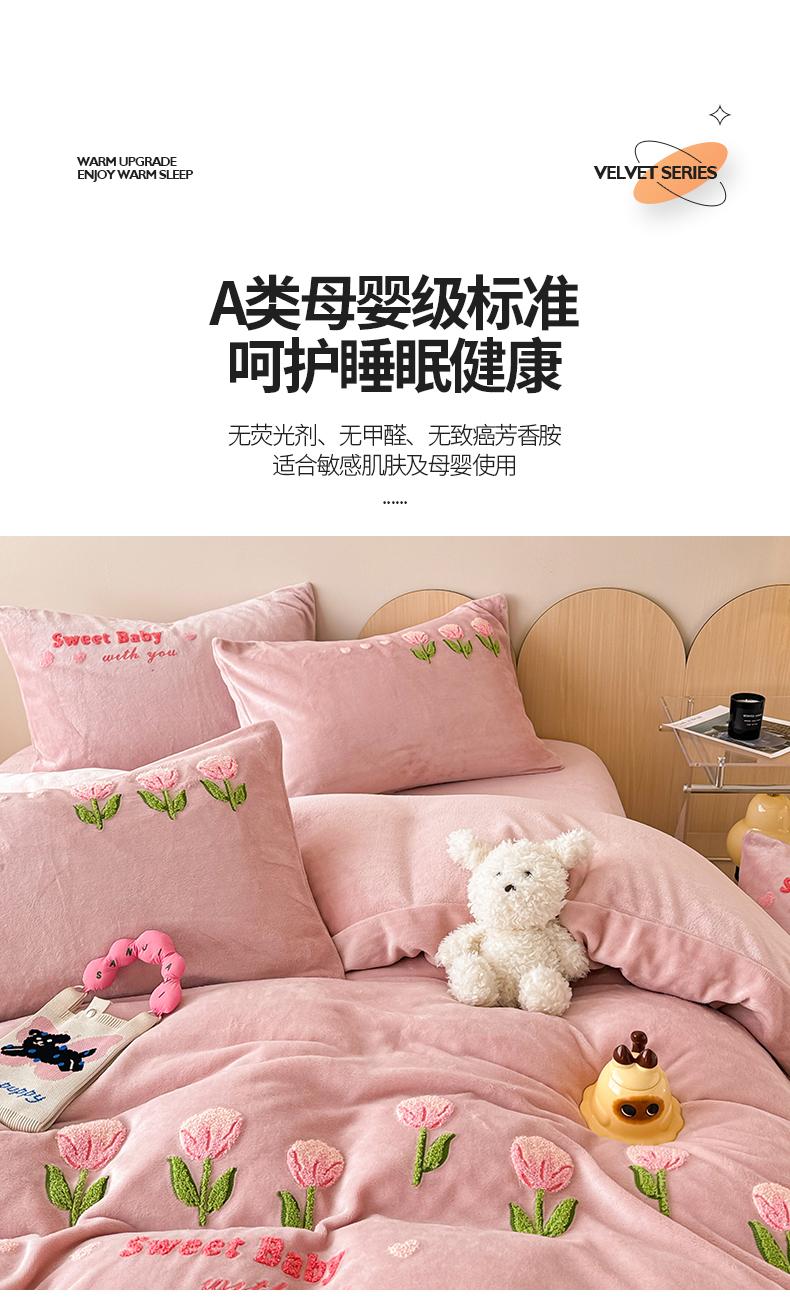 商品名称:懒猫家纺 2025新款牛奶绒毛巾绣四件套 甜蜜宝贝
