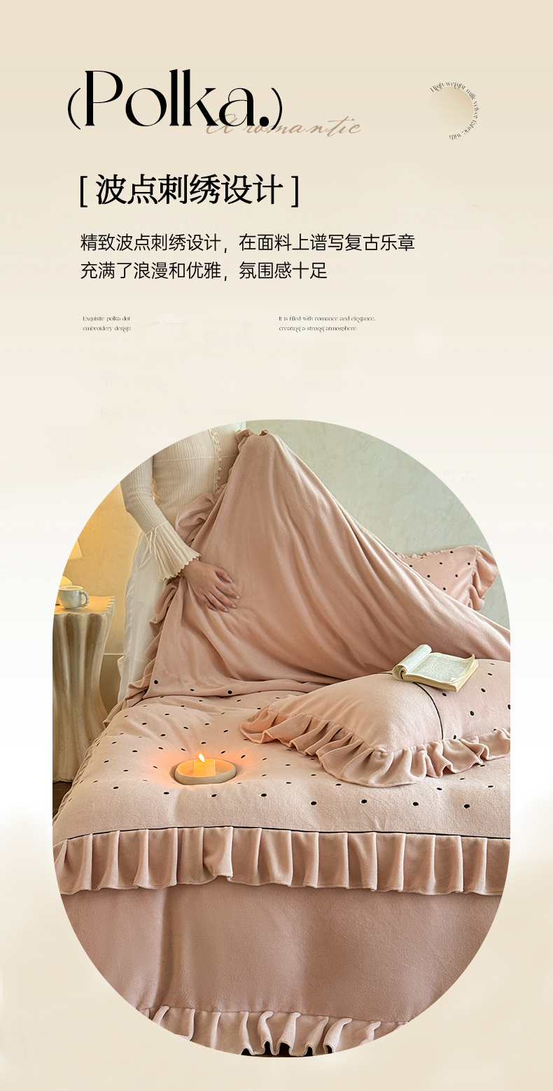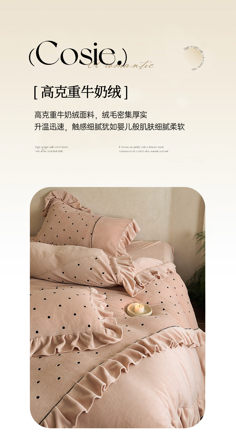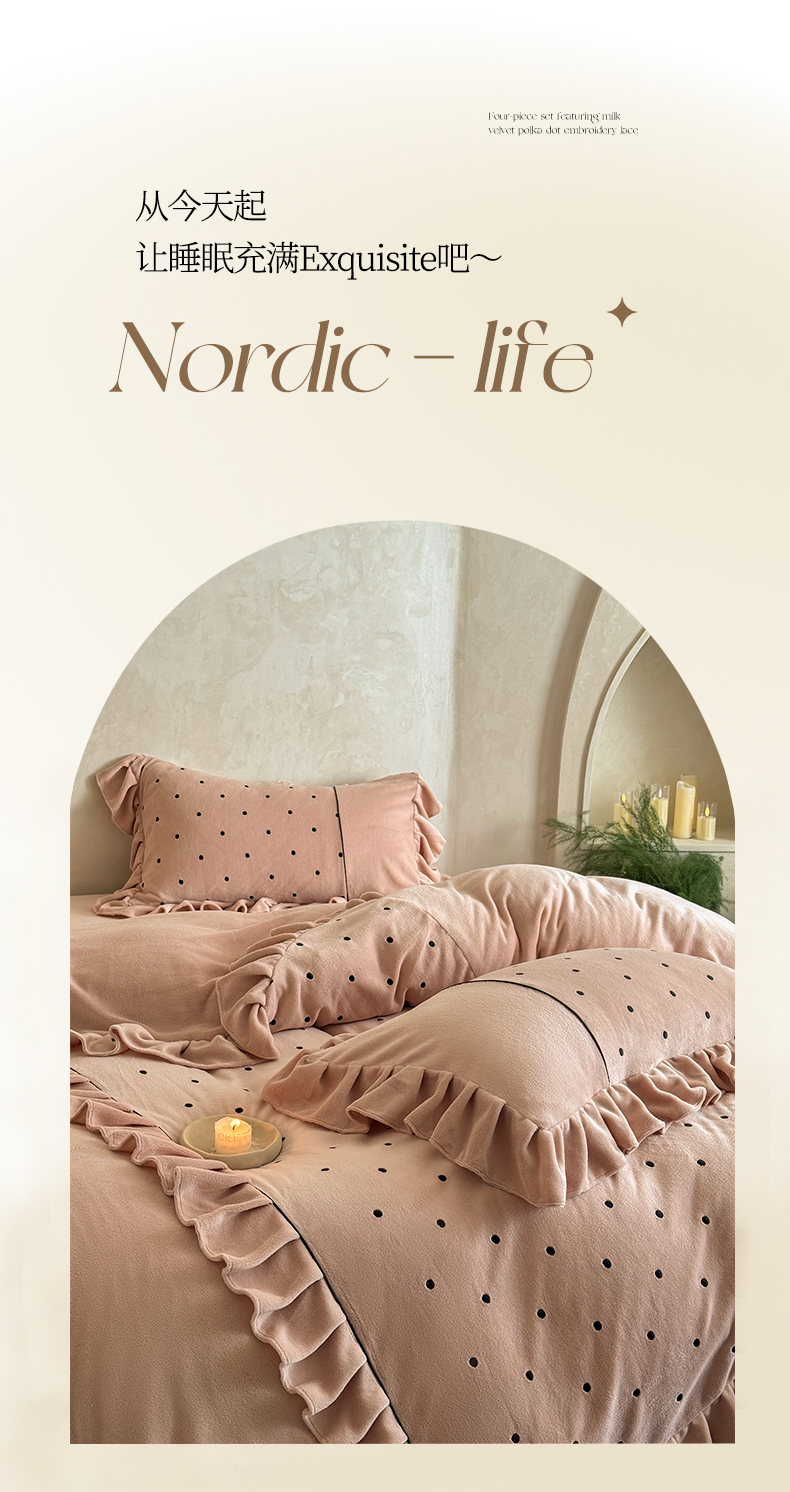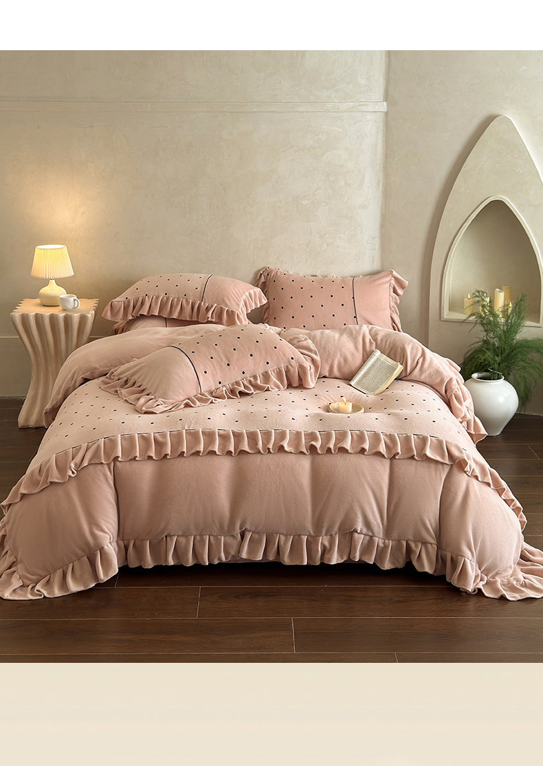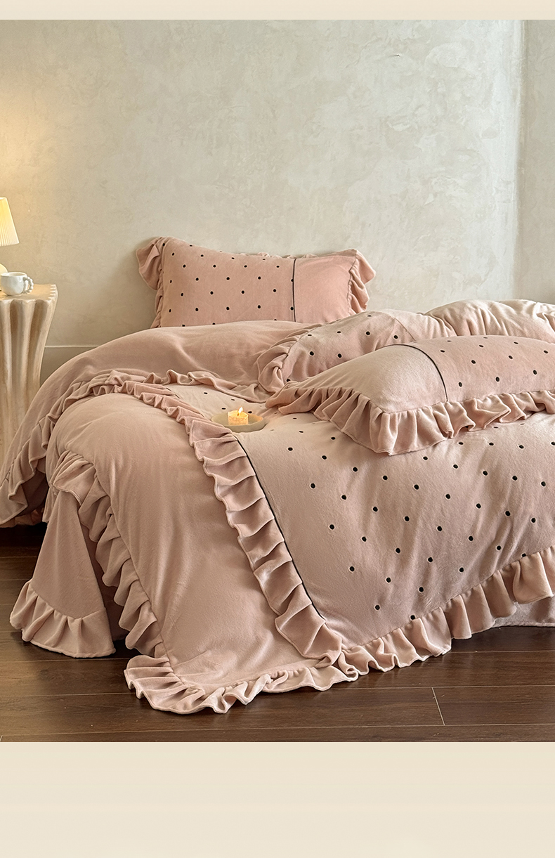 (总)豪美鑫 2025新款牛奶绒波点刺绣花边四件套-波尔卡系列