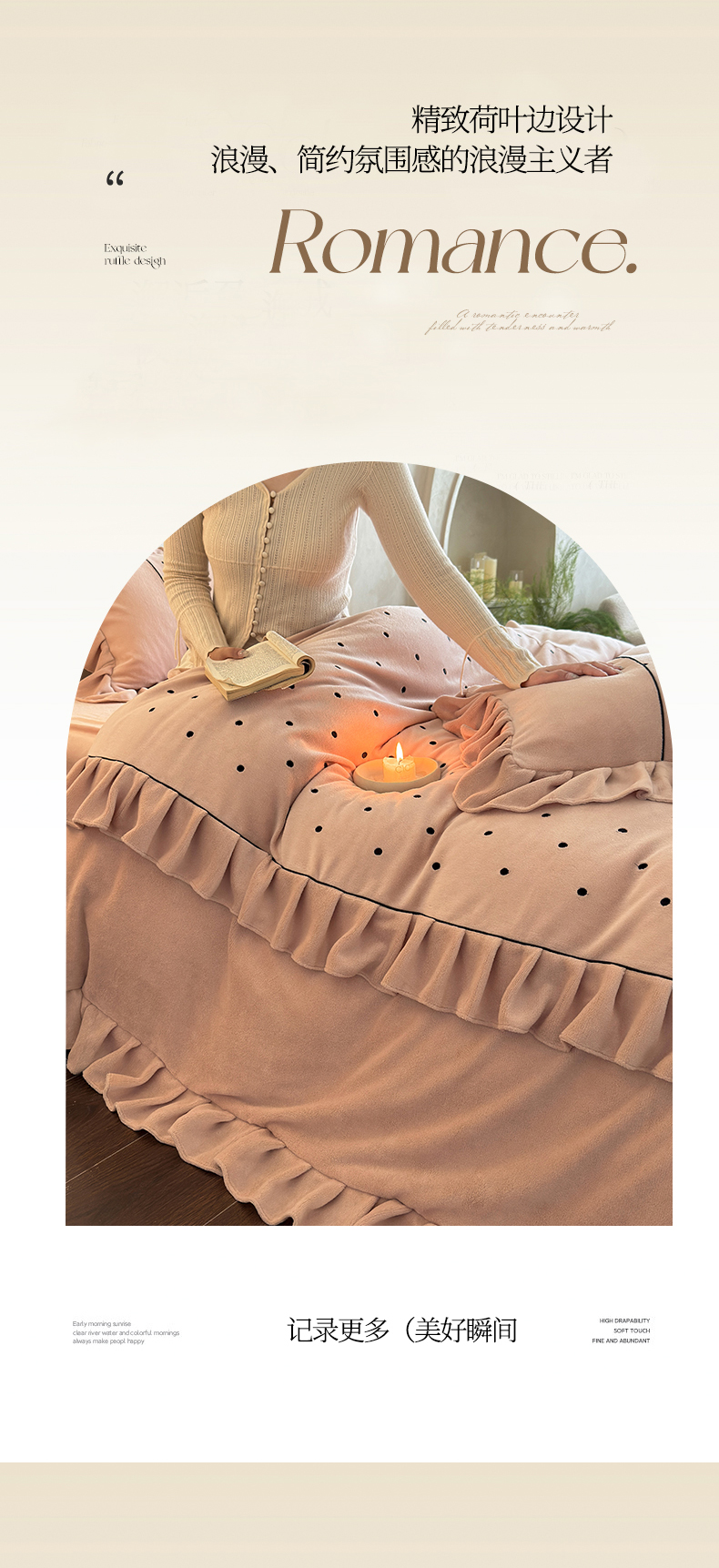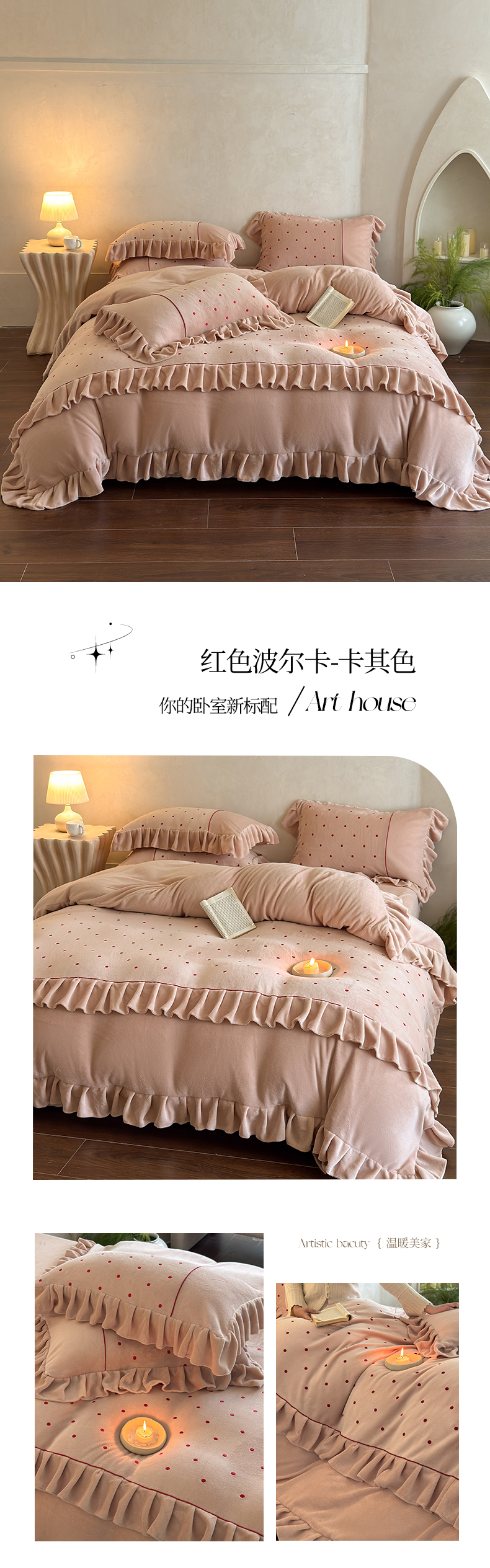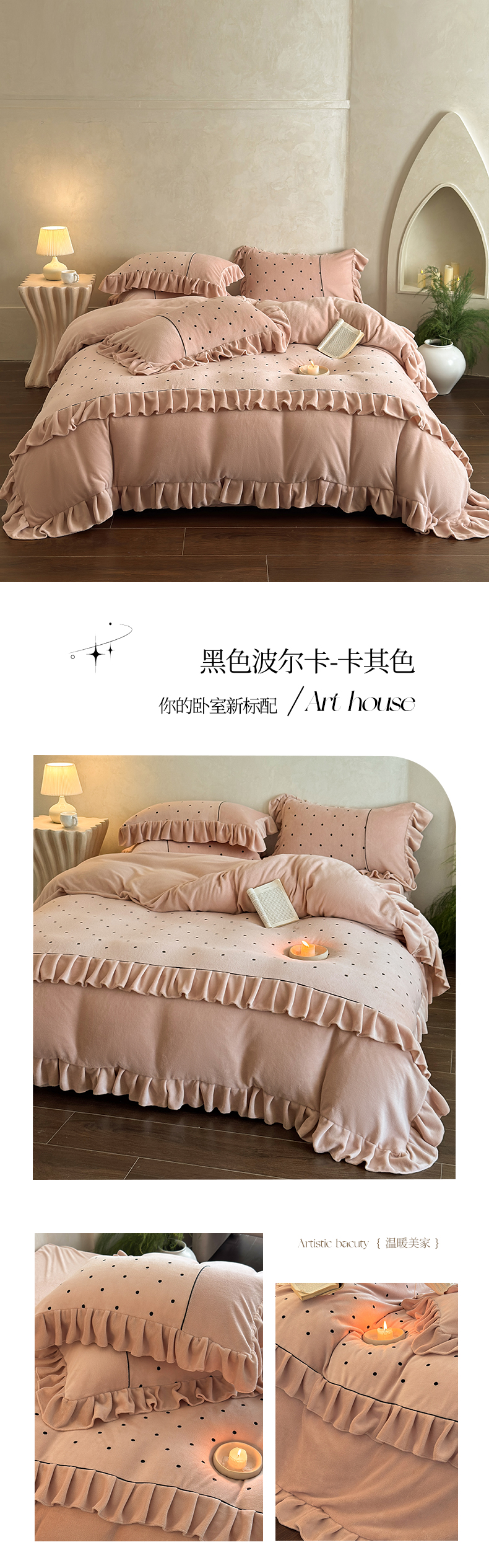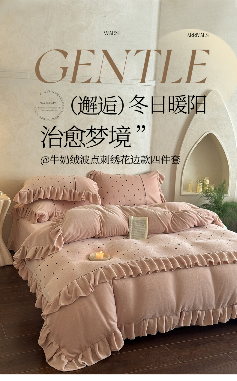 (总)豪美鑫 2025新款牛奶绒波点刺绣花边四件套-波尔卡系列