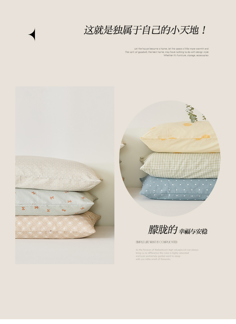 EH家居 2025新款全棉小清新印花单枕套-织光系列 组合图仅供展示