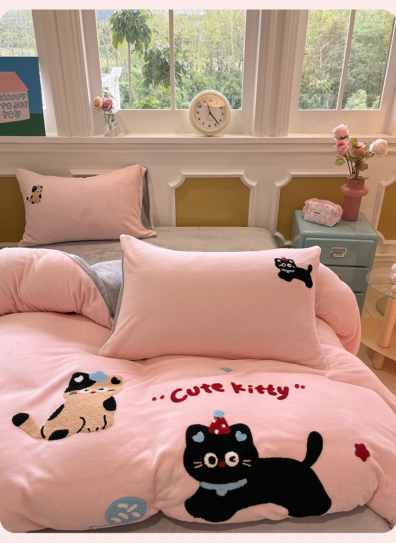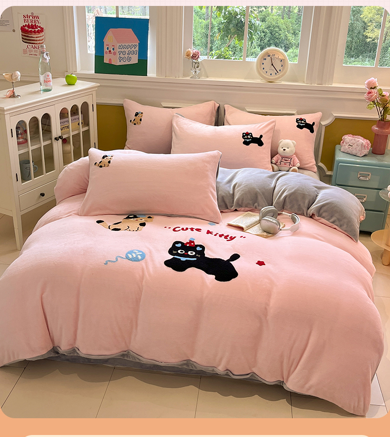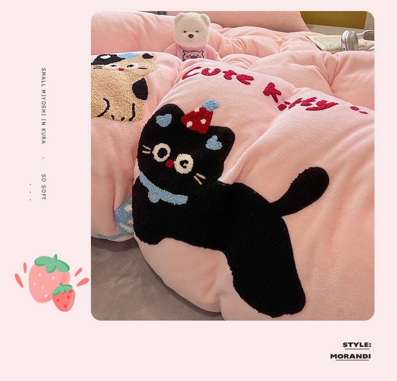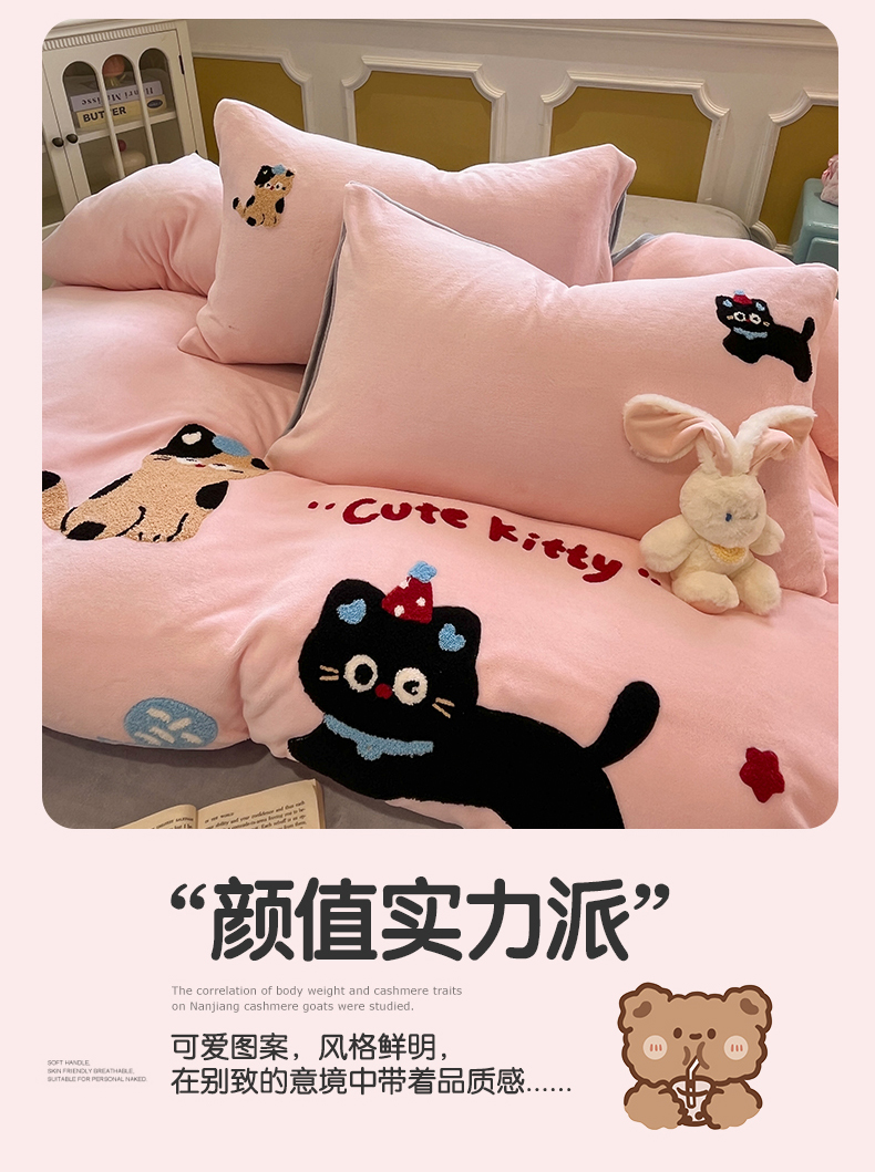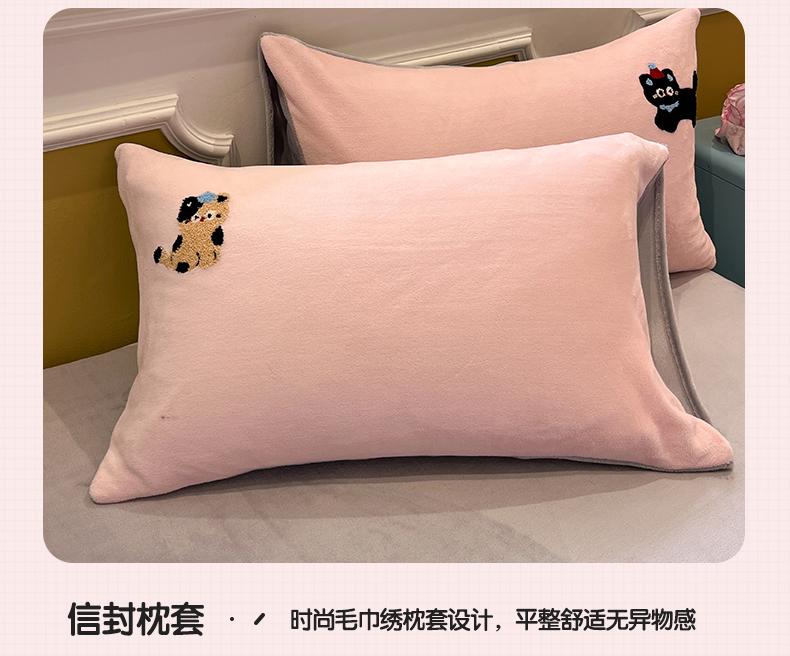 商品名称:优迈 2025新款A类卡通200g牛奶绒毛巾绣四件套 粉甜喵语