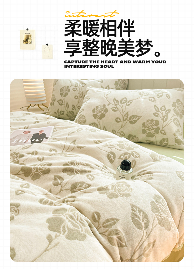(总)优迈 2025秋冬新款直播热卖轻奢法式美拉德风高克重加厚獭兔毛绒牛奶绒四件套,繁花,豹纹,蝶影,黑白,花间灰,花影,花枝,卉兰,拉布布,绿野,玫语,墨染,墨枝,云杉,棕野