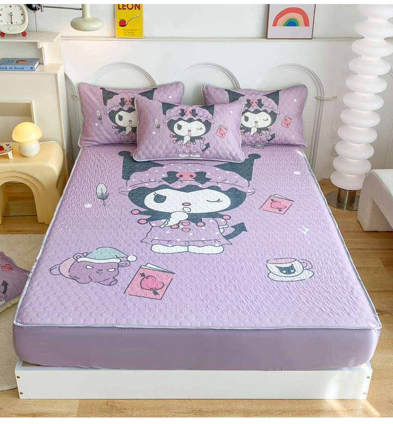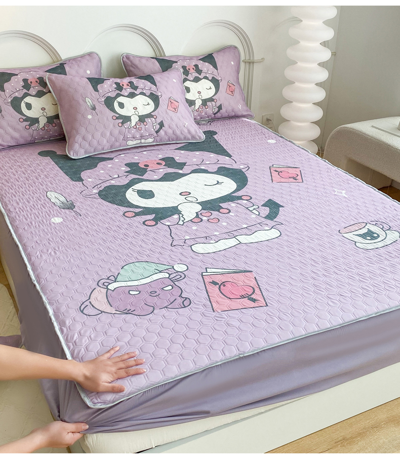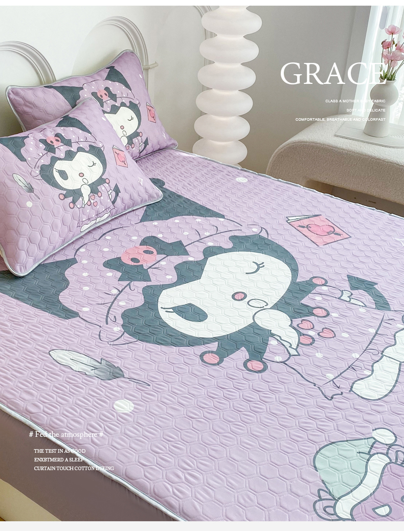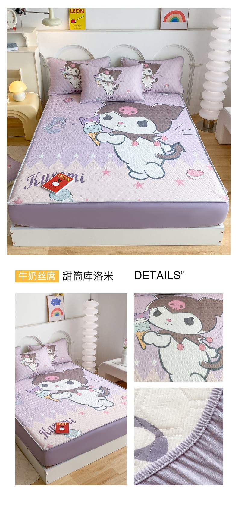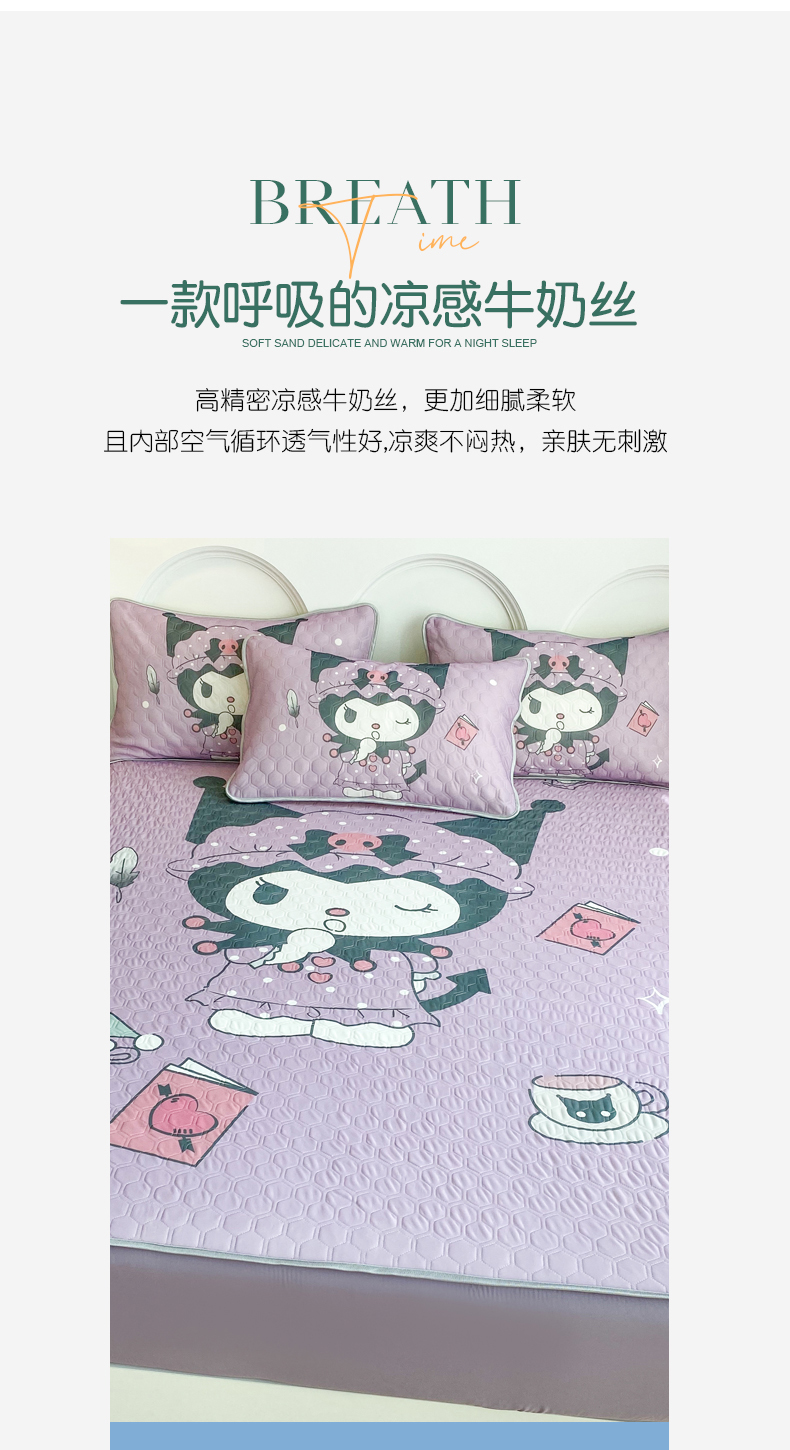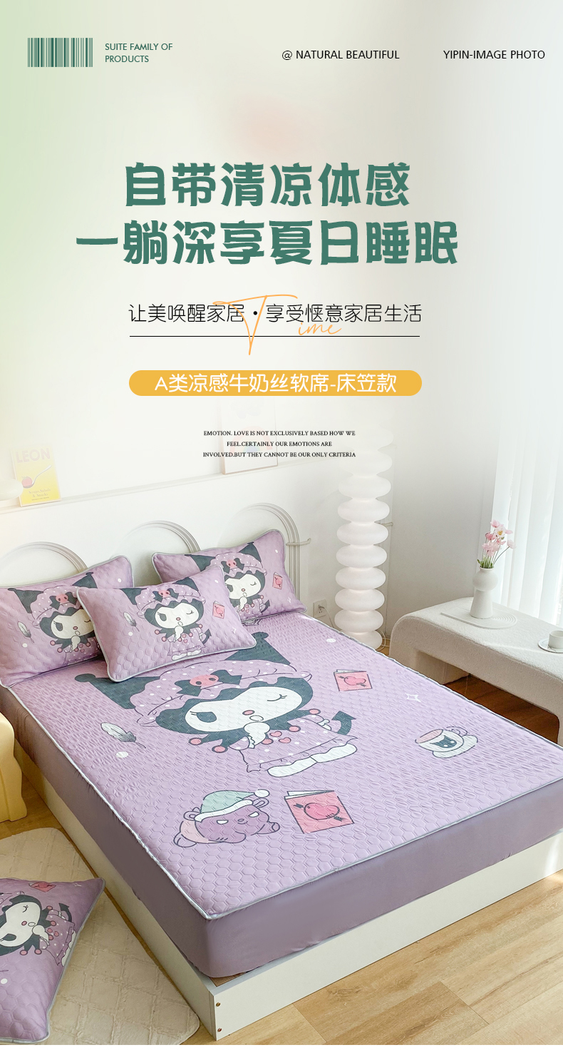 • 91家纺网 家纺一手货源 找家纺 一电 2025新款牛奶丝凉席床笠可水洗凉感丝凉席学生宿舍单人裸睡空调席-系列二 魔法库洛米