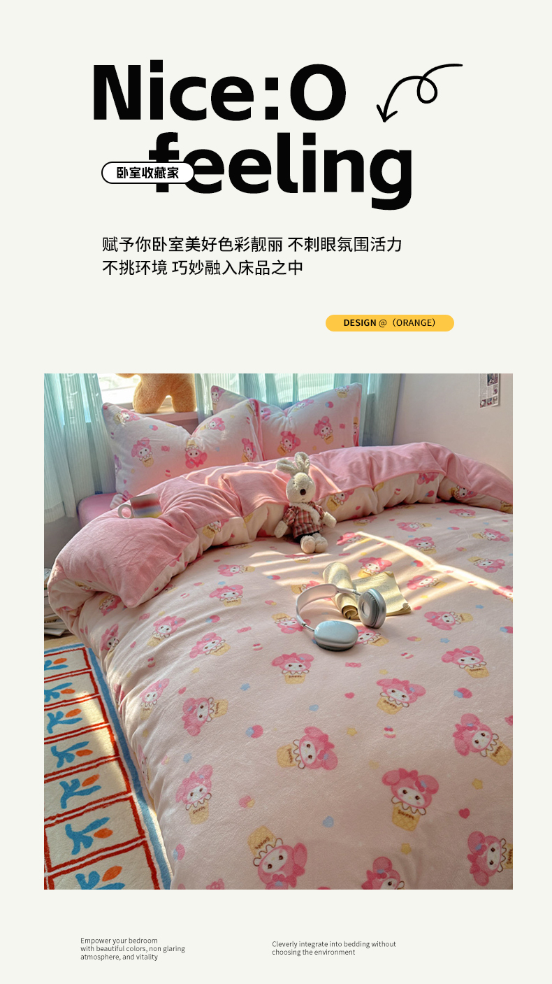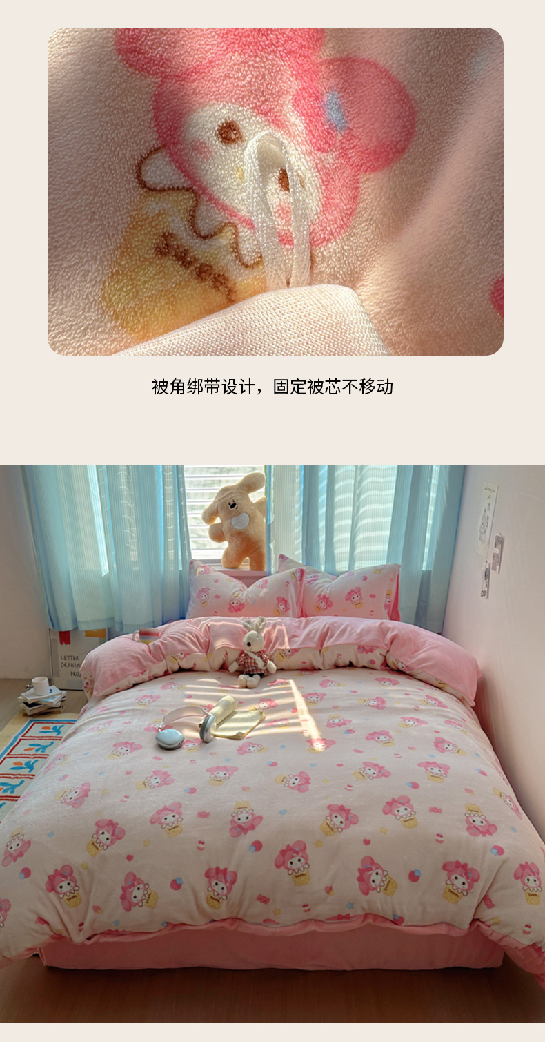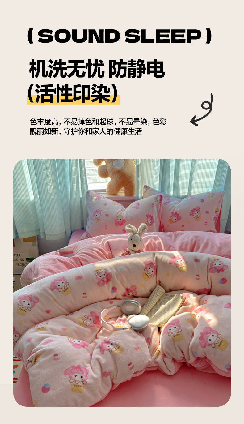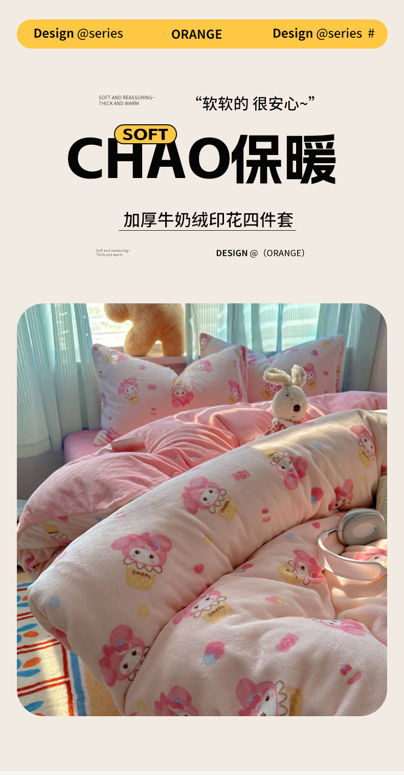 当前位置: 91家纺网 > 商品网购 > 床品套件 > 四件套 > 牛奶绒四件套 > 繁花家居 2025新款小清新180克跑量款牛奶绒三件套四件套 可爱美蒂