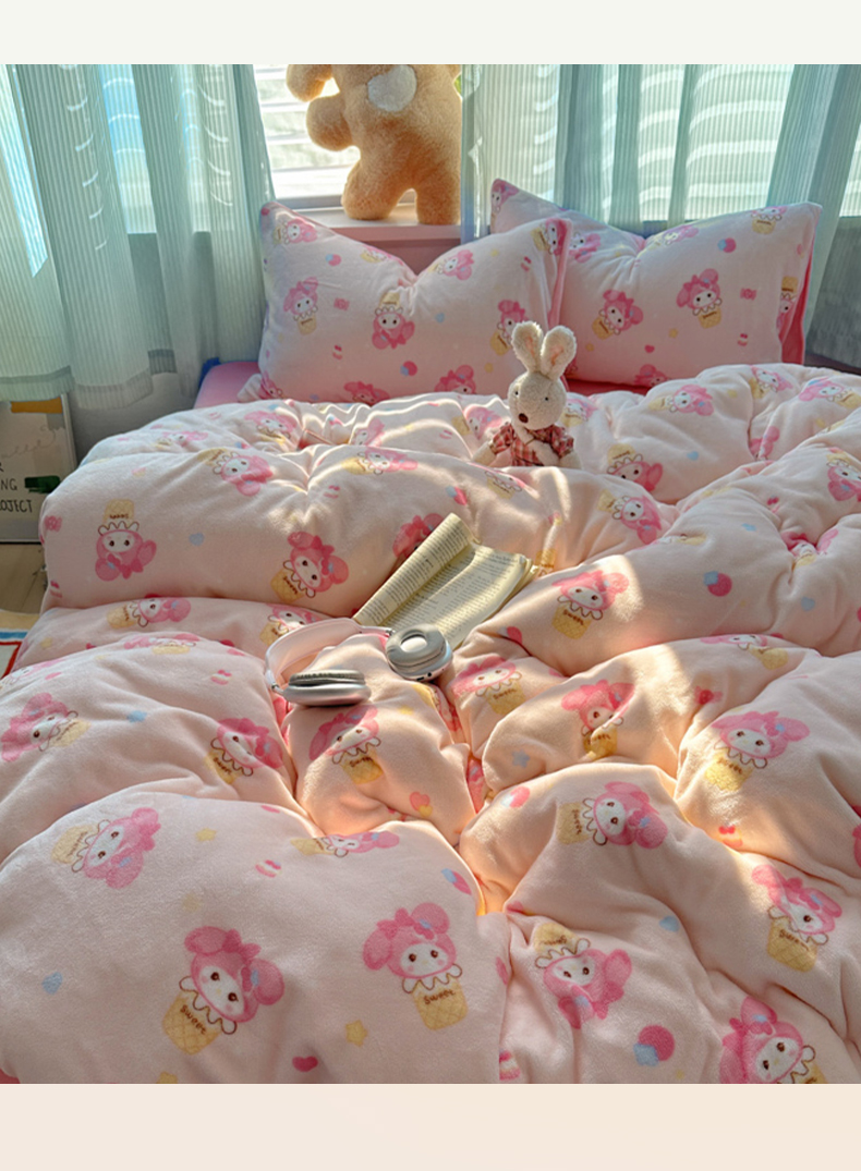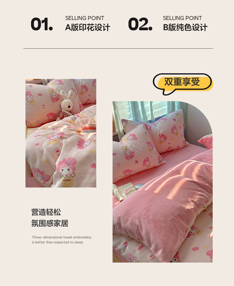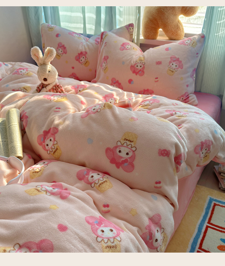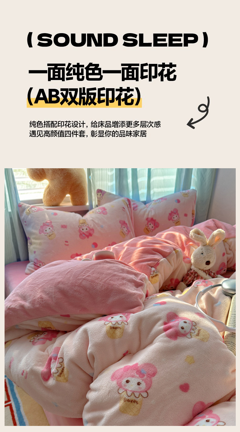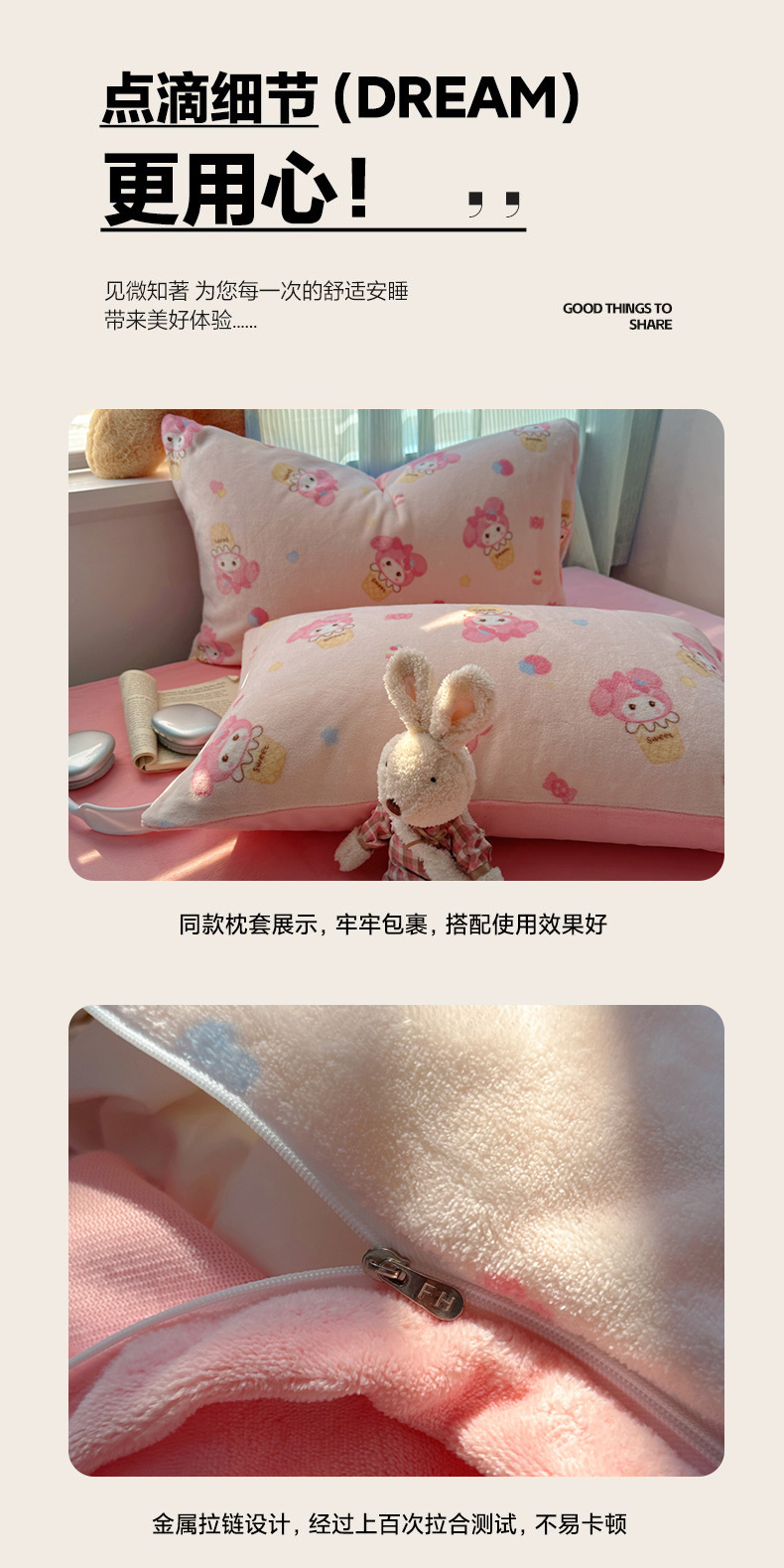 当前位置: 91家纺网 > 商品网购 > 床品套件 > 四件套 > 牛奶绒四件套 > 繁花家居 2025新款小清新180克跑量款牛奶绒三件套四件套 可爱美蒂