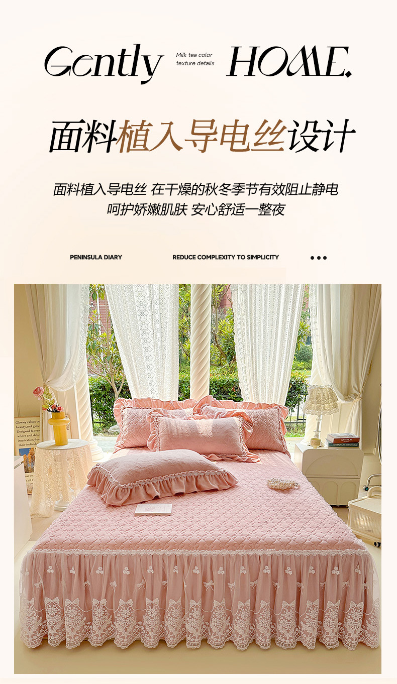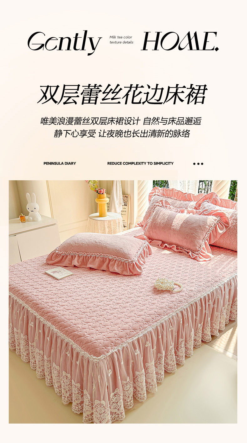 商品名称:罗艺轩 【控价】2025新款立体雕花牛奶绒加厚保暖床裙款三件套-安琪儿 安琪儿-粉