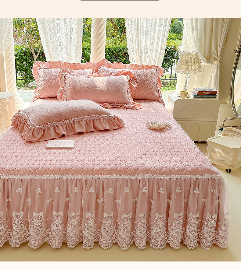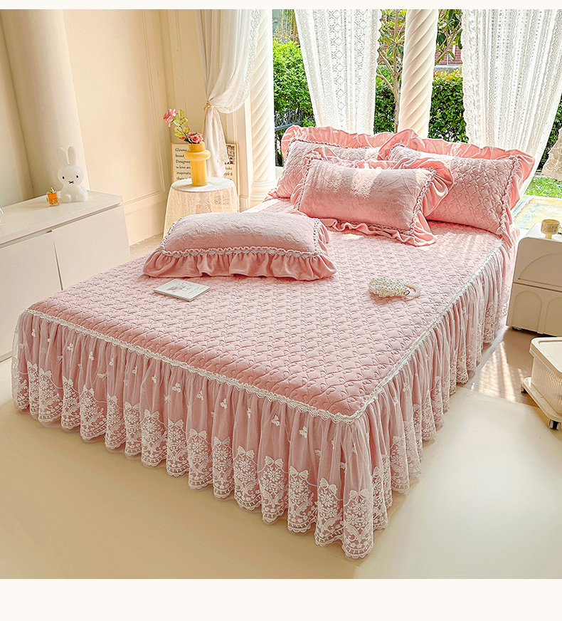罗艺轩 【控价】2025新款立体雕花牛奶绒加厚保暖床裙款三件套-安琪儿 安琪儿-粉