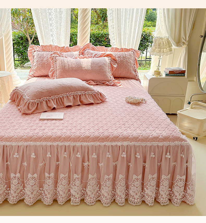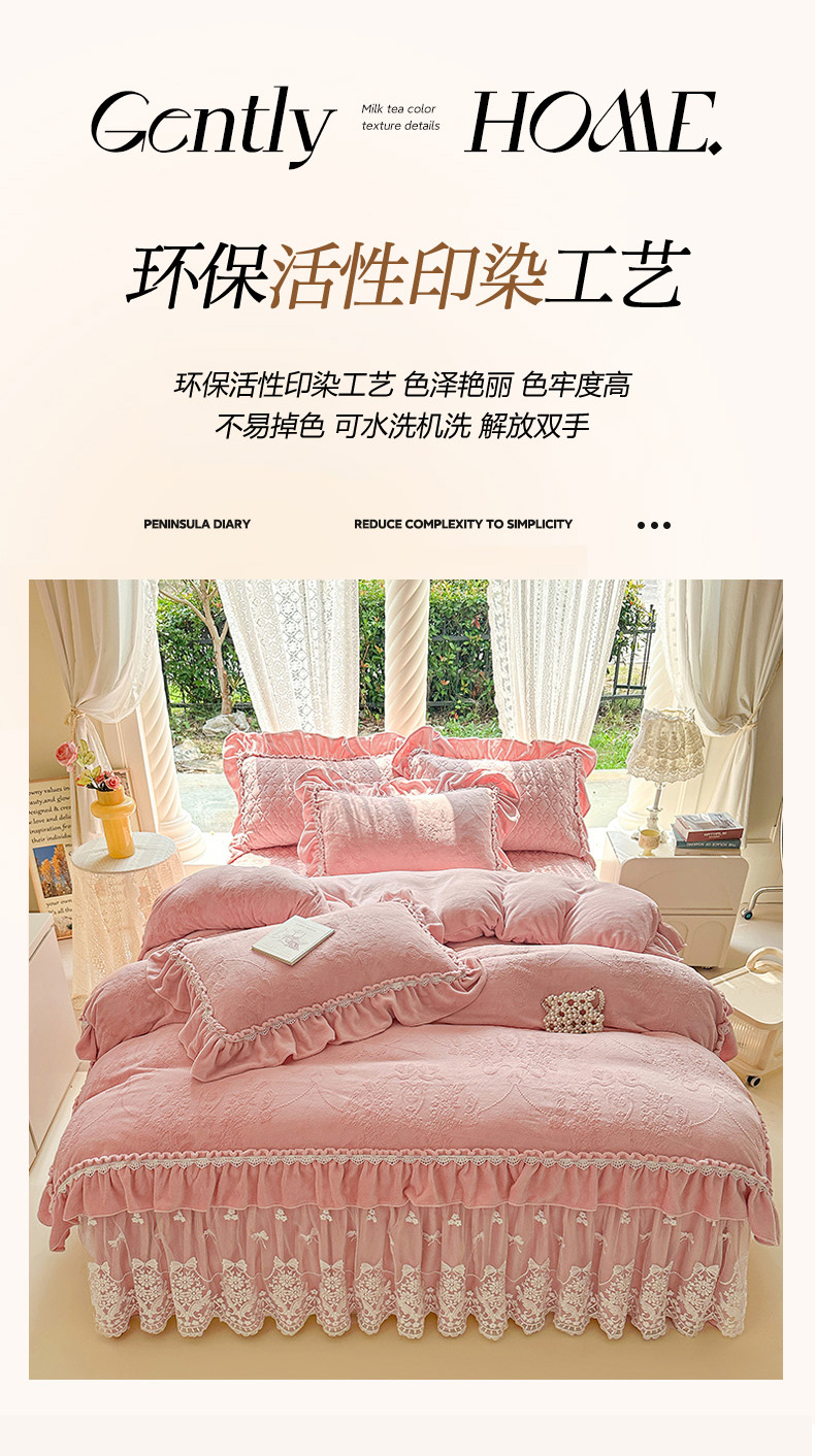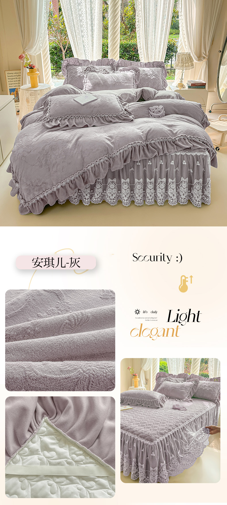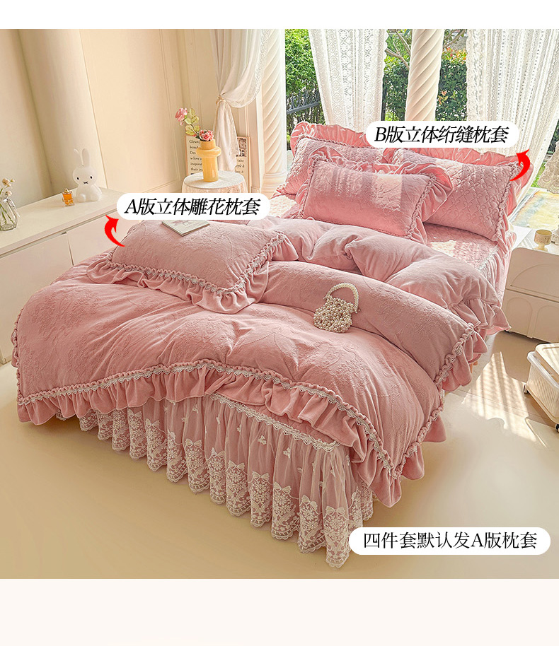 当前位置: 91家纺网 > 商品网购 > 床品套件 > 四件套 > 其它四件套 > 罗艺轩 【控价】2025新款立体雕花牛奶绒加厚保暖床裙款四件套-安琪儿 安琪儿-粉