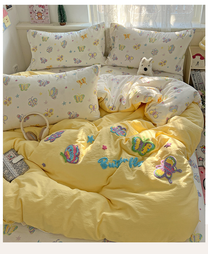当前位置: 91家纺网 > 商品网购 > 床品套件 > 四件套 > 双层纱四件套 > 花伞家居 2025新款毛巾绣印花双层纱四件套(提供买家秀) 花蝴蝶