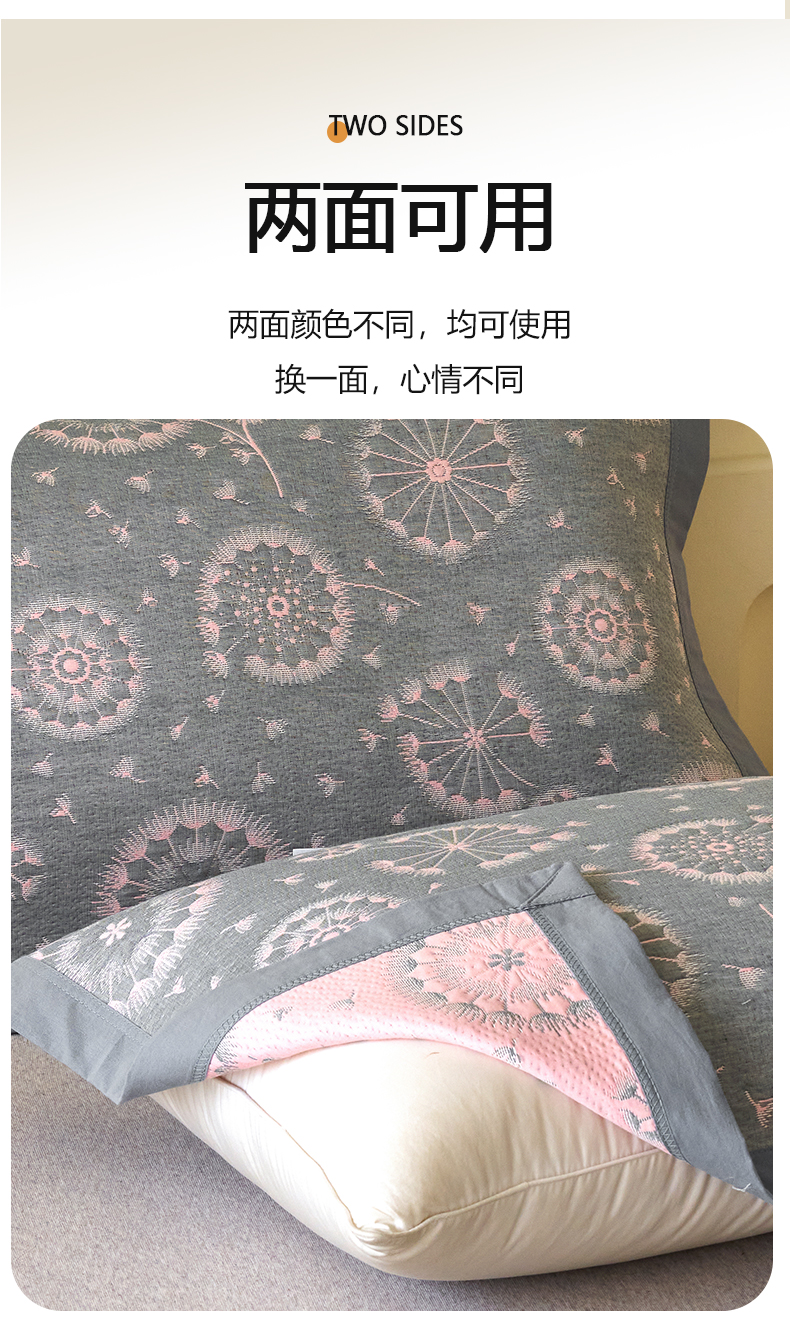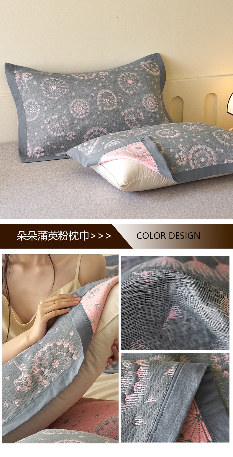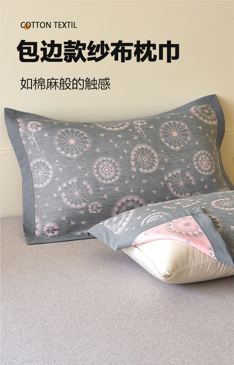 棠薇家纺 2025新款简约包边款枕巾纯棉枕巾夹绵枕巾透气吸汗 朵朵蒲英粉枕巾
