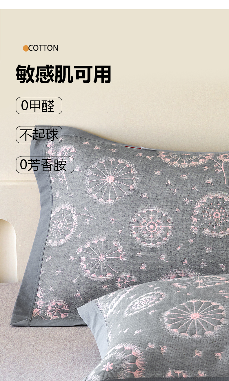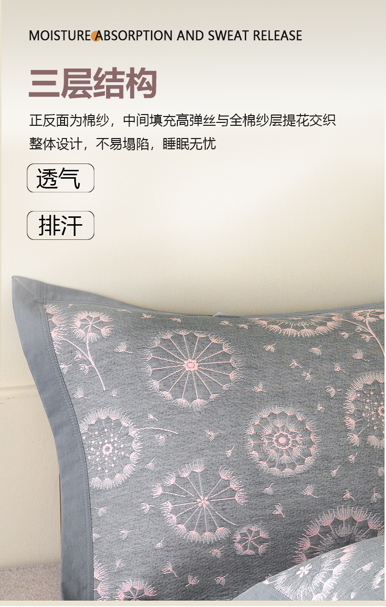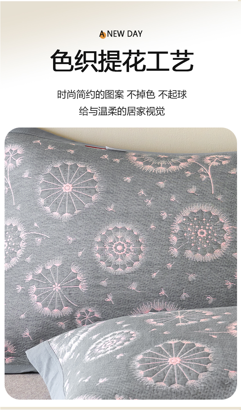 棠薇家纺 2025新款简约包边款枕巾纯棉枕巾夹绵枕巾透气吸汗 朵朵蒲英粉枕巾