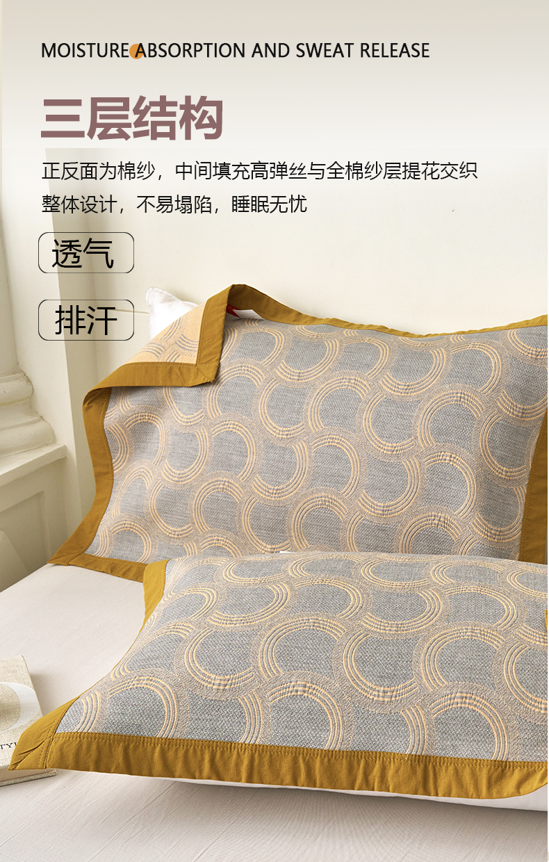 棠薇家纺 2025新款简约包边款枕巾纯棉枕巾夹绵枕巾透气吸汗 轻纱曼舞黄枕巾