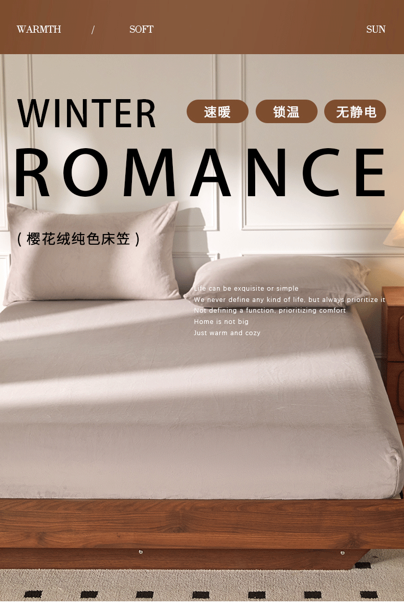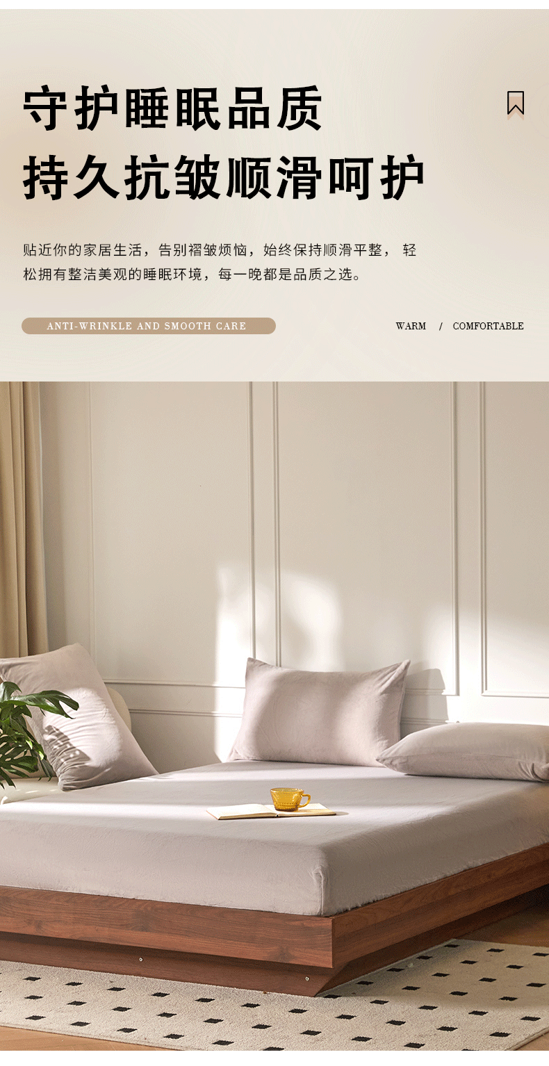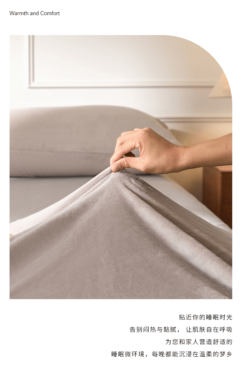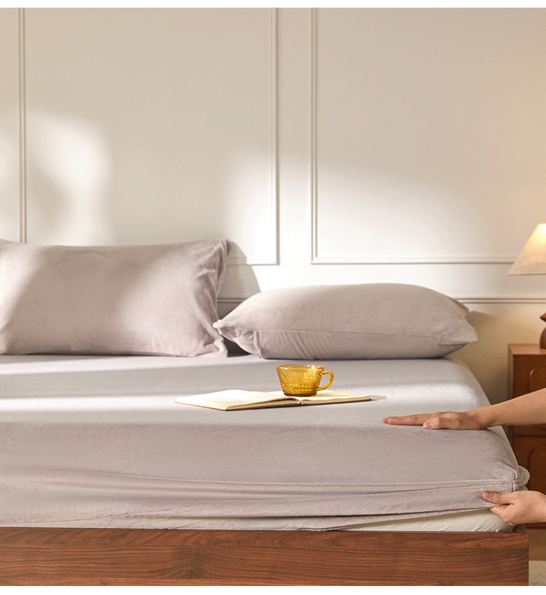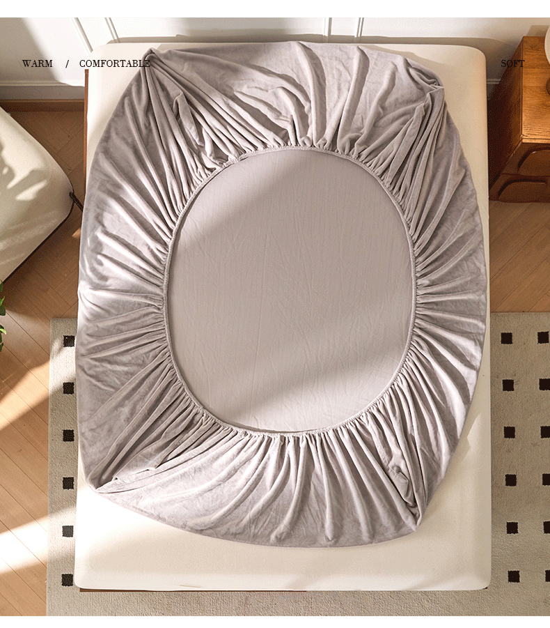 商品名称:618家纺 2025新款樱花绒单品四件套系列-单床笠 雾灰