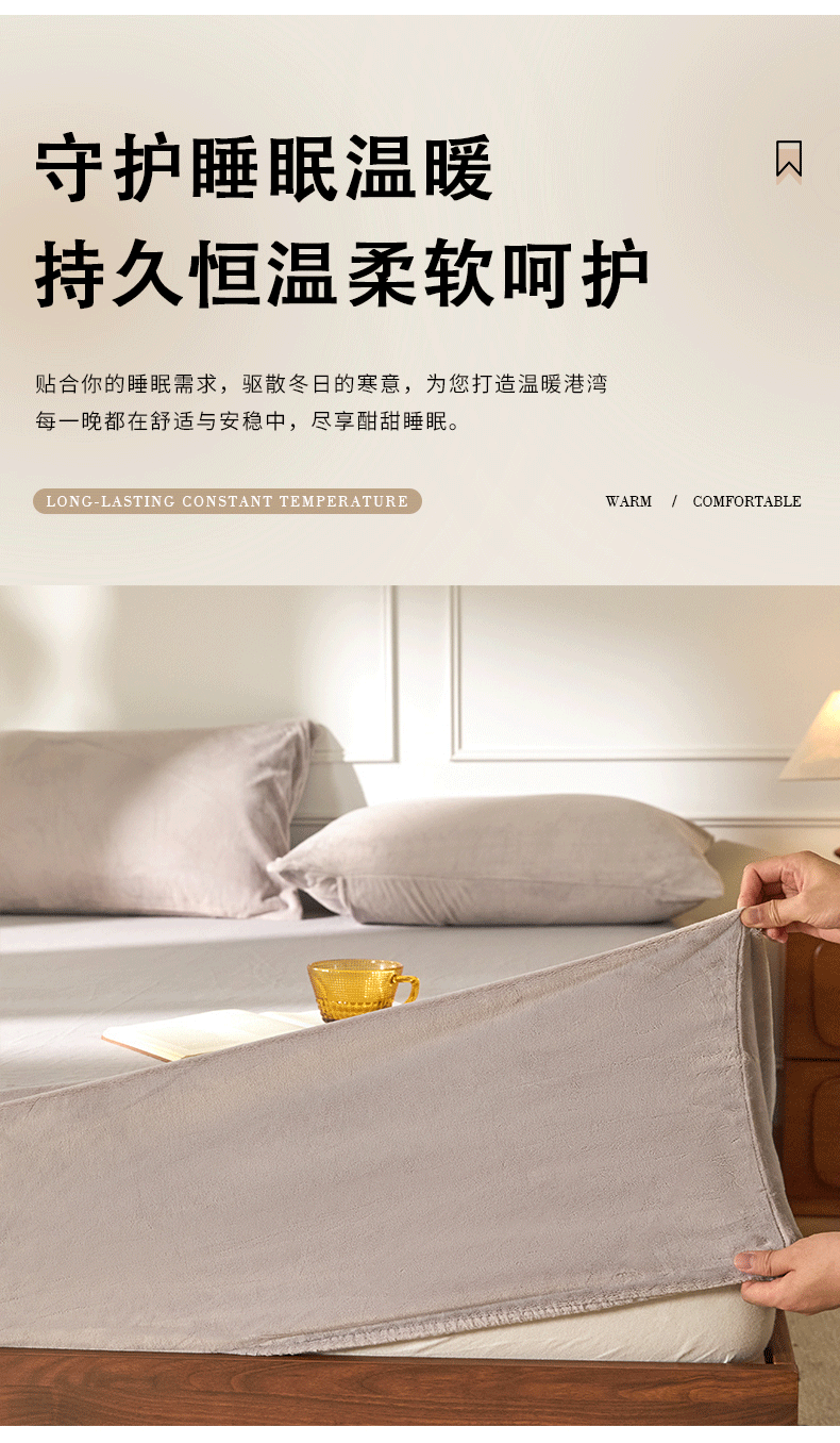 618家纺 2025新款樱花绒单品四件套系列-单床笠 雾灰