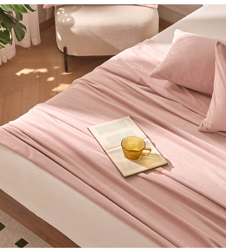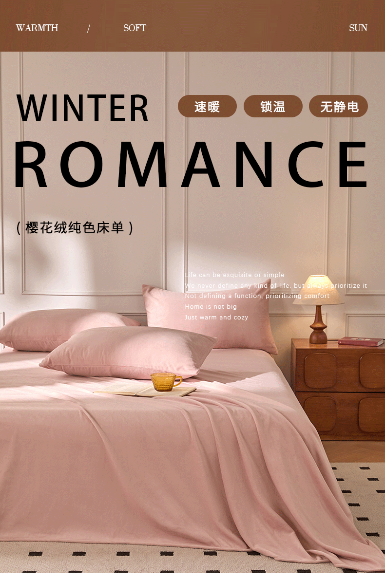 618家纺 2025新款樱花绒单品四件套系列-单床单 雾粉