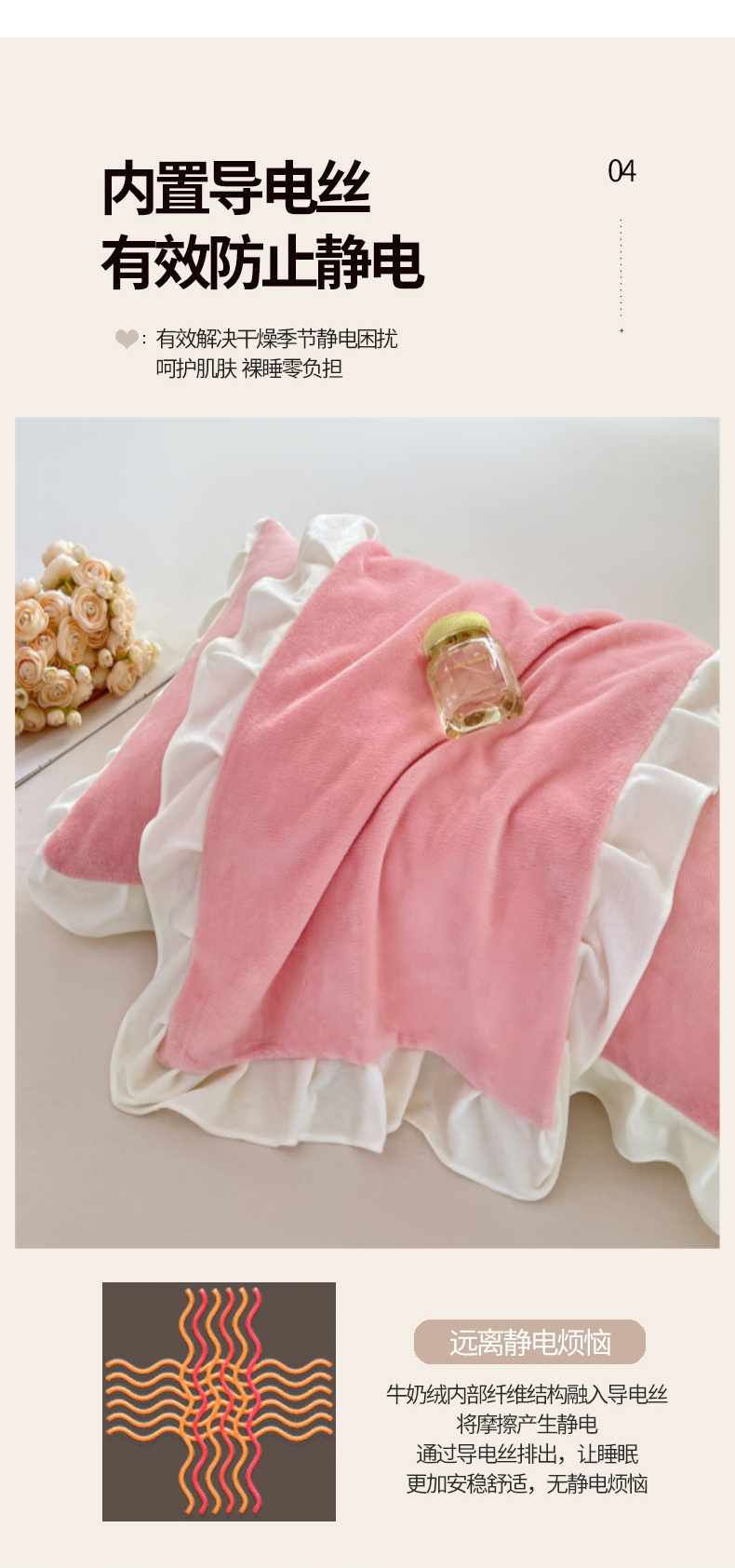 商品名称:圣比熊 2025A类新款牛奶绒花枕套边双人宿舍法兰绒情侣枕头套珊瑚绒枕芯套 西柚粉
