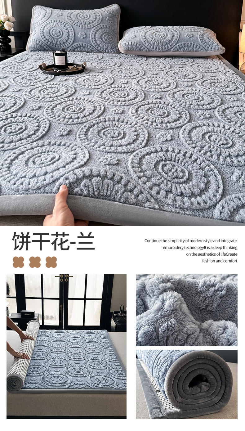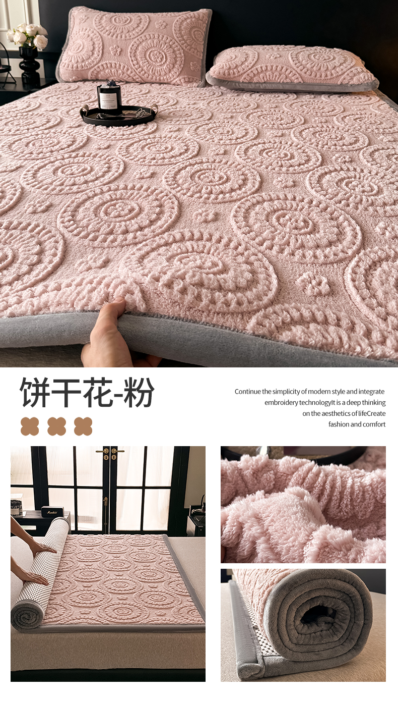 (总)鑫姿席业 2025新款5D雕花绒床褥垫床垫,饼干花-白,饼干花-粉,饼干花-灰,饼干花-卡其,饼干花-兰,饼干花-绿,叶菱格-白,叶菱格-咖,叶菱格-蓝,叶菱格-绿