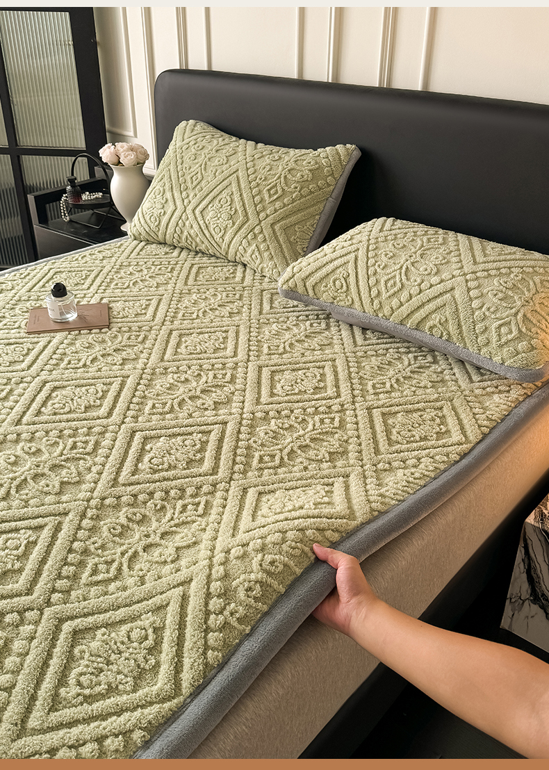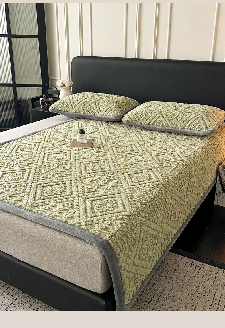 鑫姿席业 2025新款5D雕花绒床褥垫床垫 叶菱格-绿