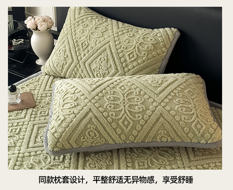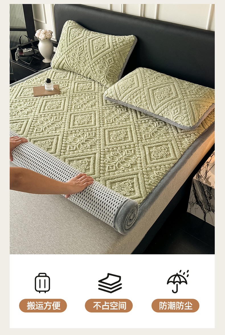 商品名称:鑫姿席业 2025新款5D雕花绒床褥垫床垫 叶菱格-绿