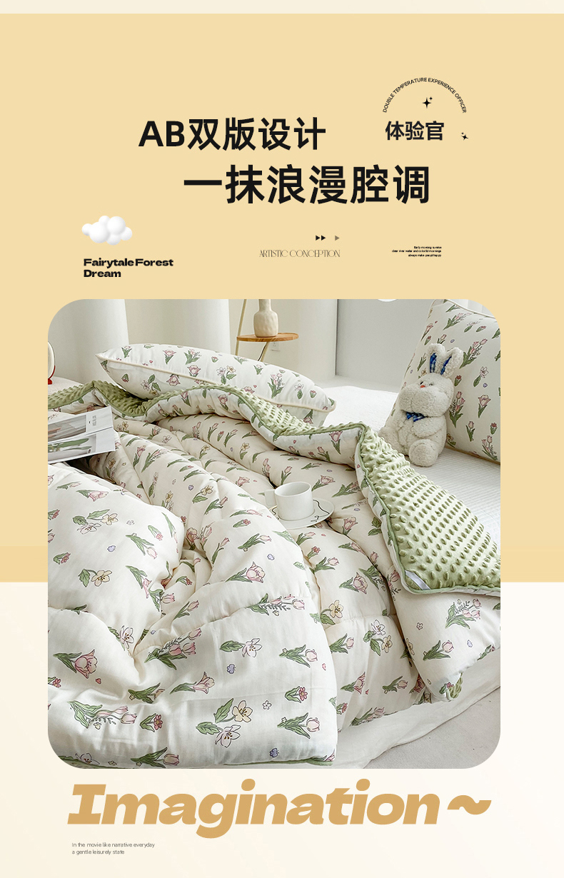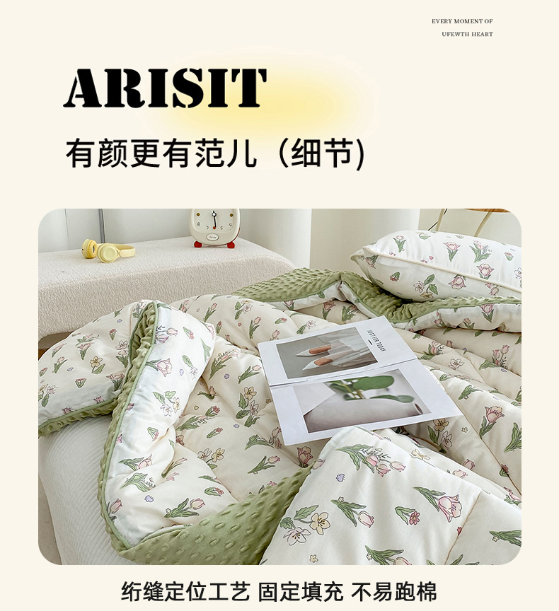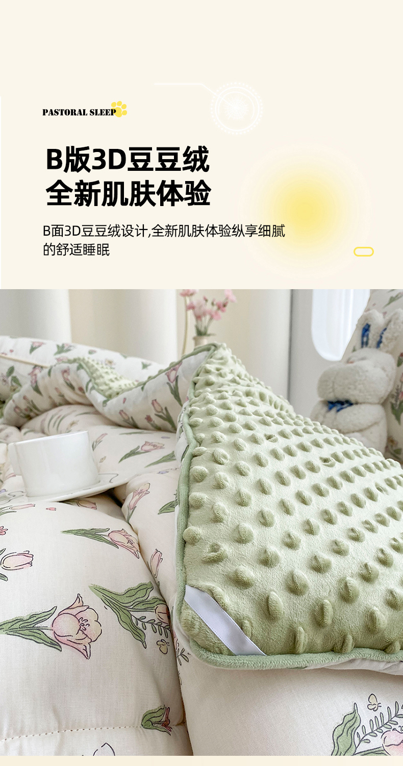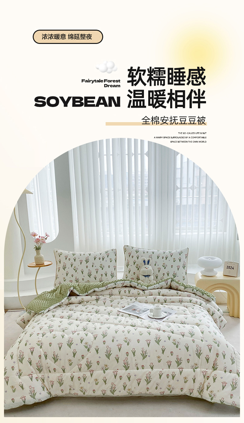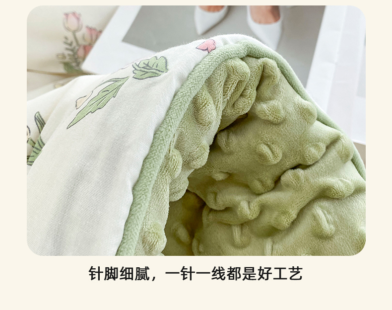 青螺家纺 2025新款高密全棉嵌绳宝宝绒春秋豆豆被 支持定制花色和冬被 有量来门市优惠 郁金香