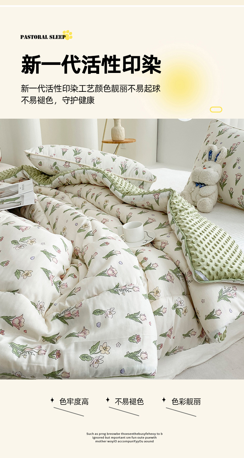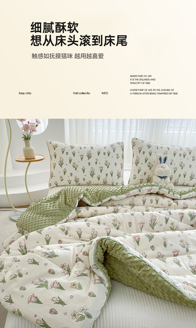 商品名称:青螺家纺 2025新款高密全棉嵌绳宝宝绒春秋豆豆被 支持定制花色和冬被 有量来门市优惠 郁金香