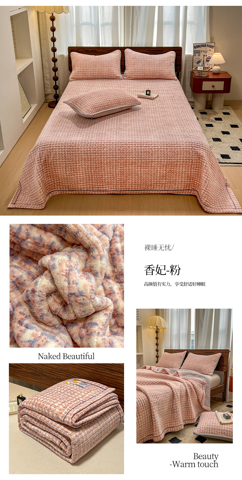 • 91家纺网 家纺一手货源 找家纺 芷卧 2025新款小香风牛奶绒床盖三件套 香妃-粉