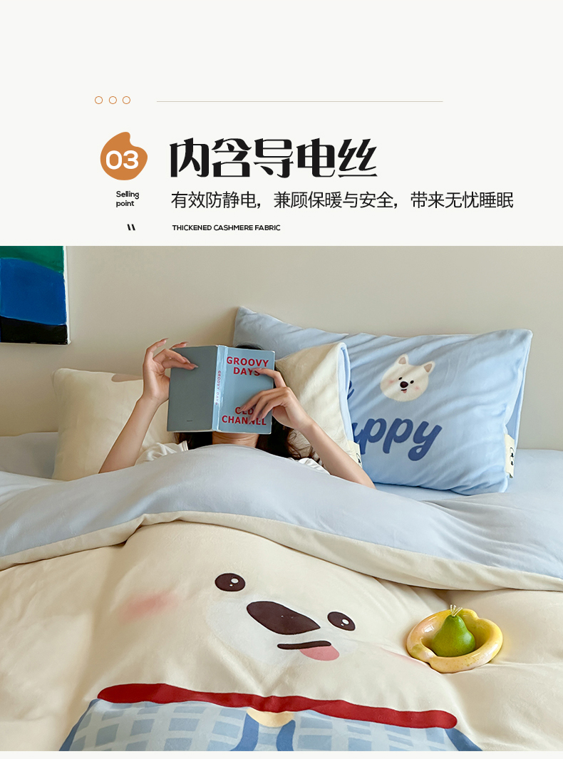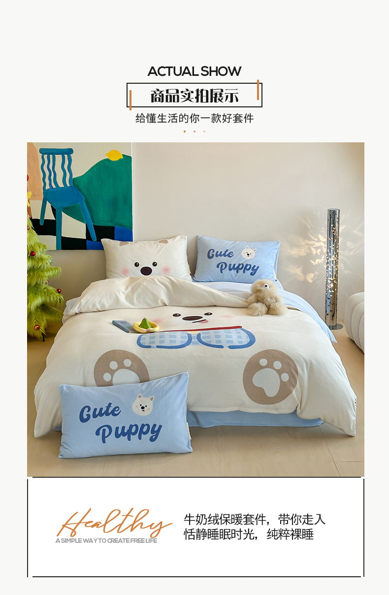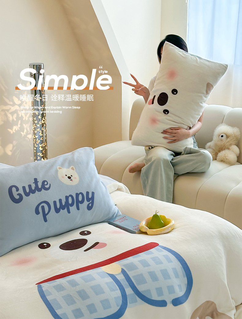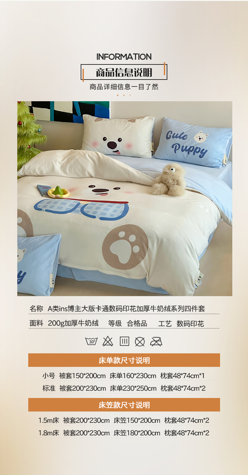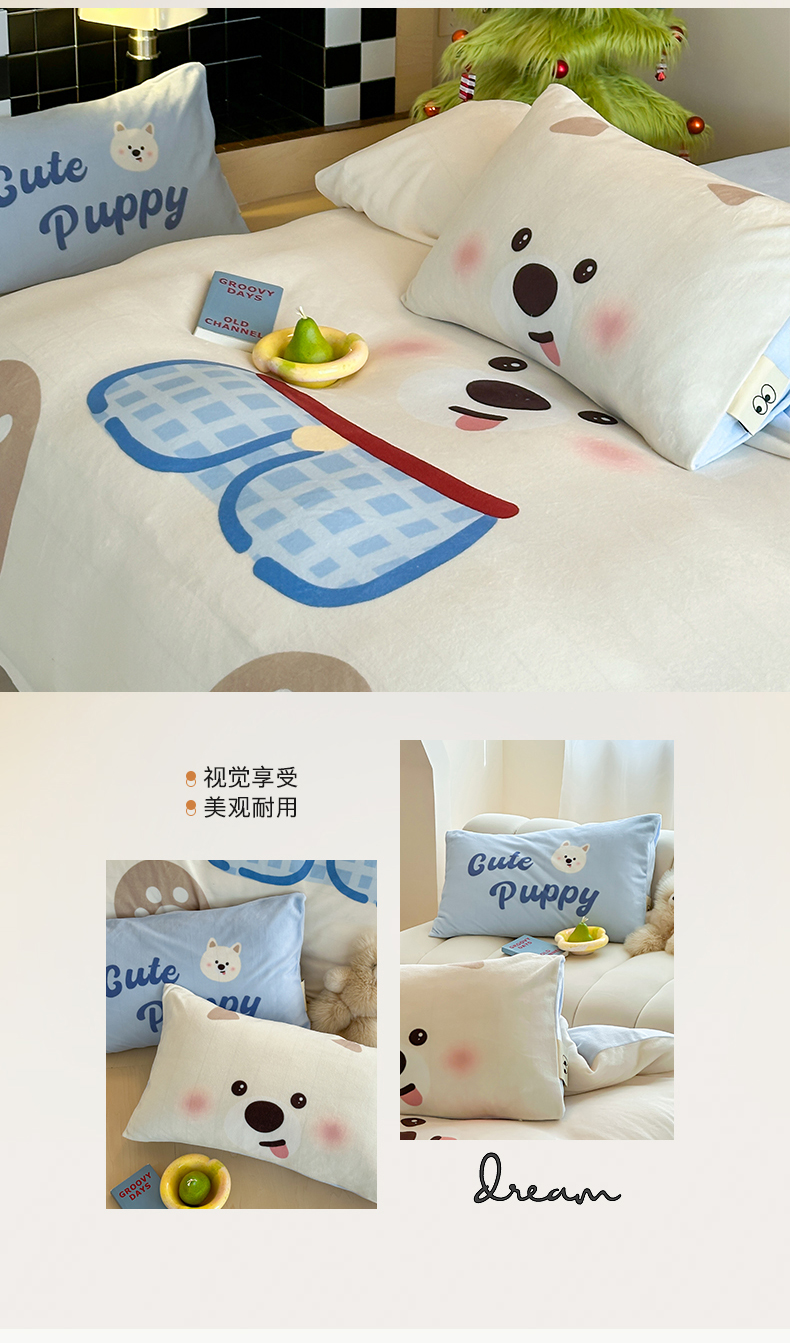 (总)桃子家居 2025新款A类高级仿生绵羊绒兔毛贴布绣刺绣工艺卡通少女加厚牛奶绒系列四件套,绵羊绒-冬日熊,绵羊绒-狗狗伙伴,绵羊绒-蓝条咖啡狗,绵羊绒-毛球猫咪,绵羊绒-圣诞小狗,绵羊绒-星星人