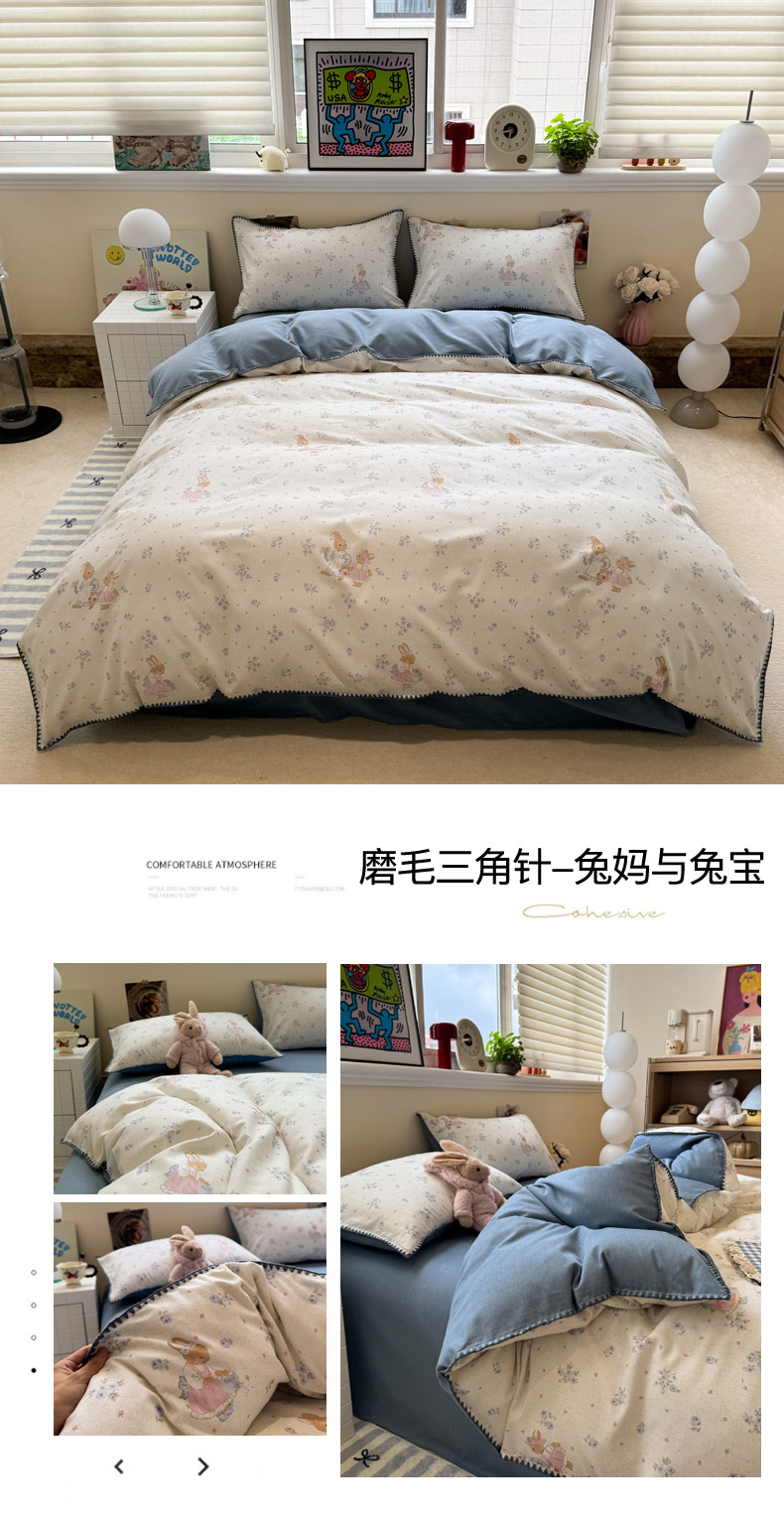 当前位置: 91家纺网 > 商品网购 > 床品套件 > 四件套 > 普通磨毛四件套 > 慕尚家纺 2025新款磨毛三角针套件四件套 磨毛三角针-呆萌兔