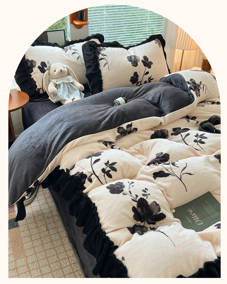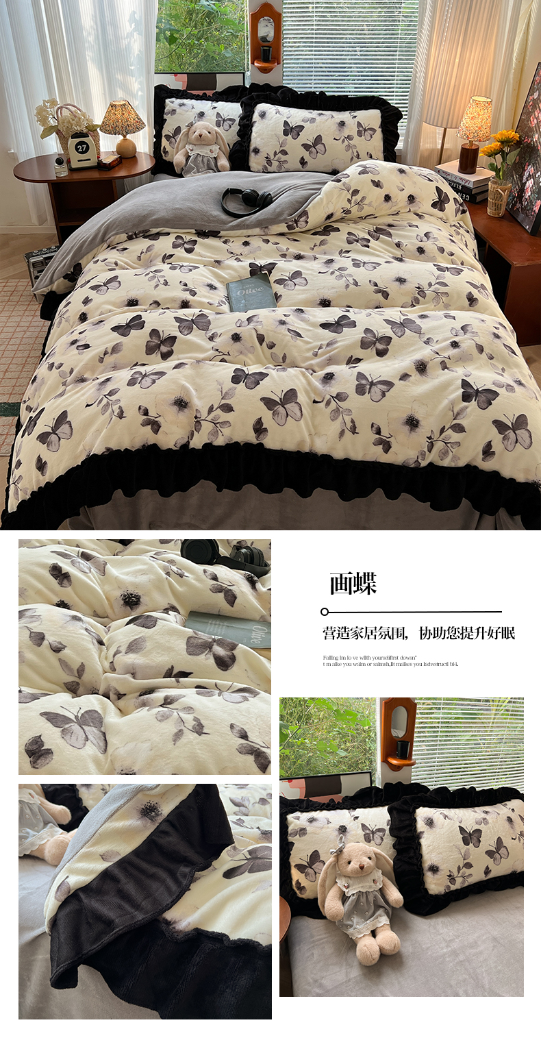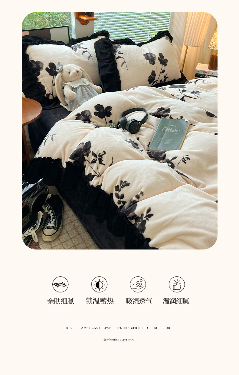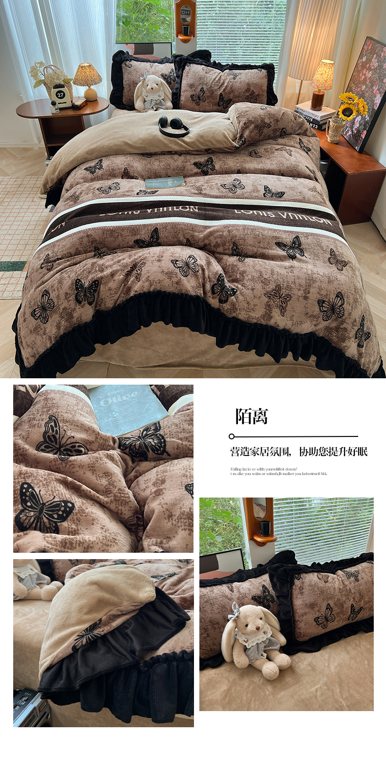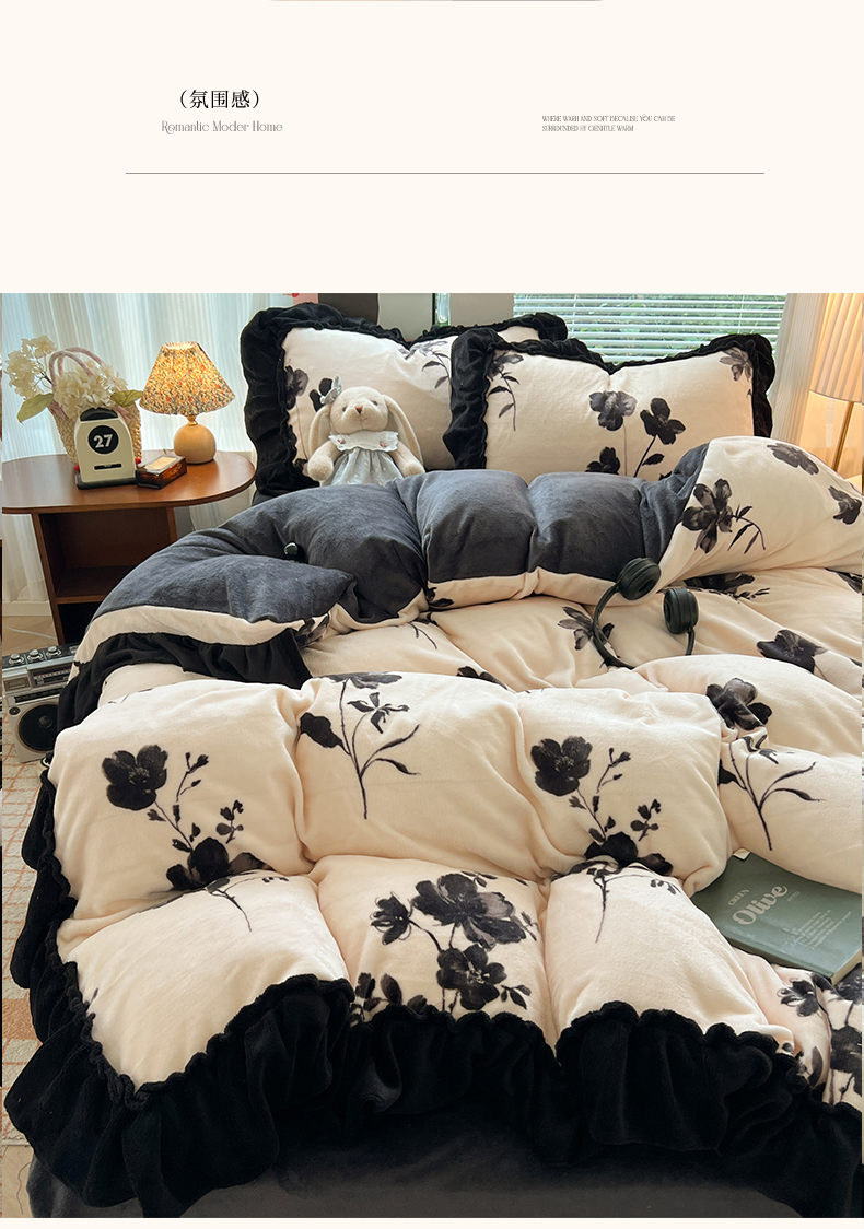 当前位置: 91家纺网 > 商品网购 > 床品套件 > 四件套 > 牛奶绒四件套 > 韩都家居 2025新款法式花边印花牛奶绒四件套 加州风情