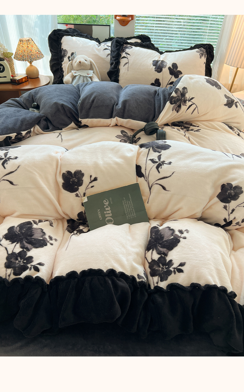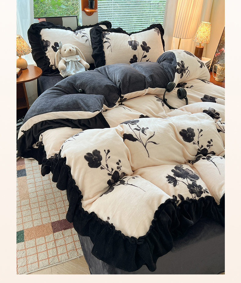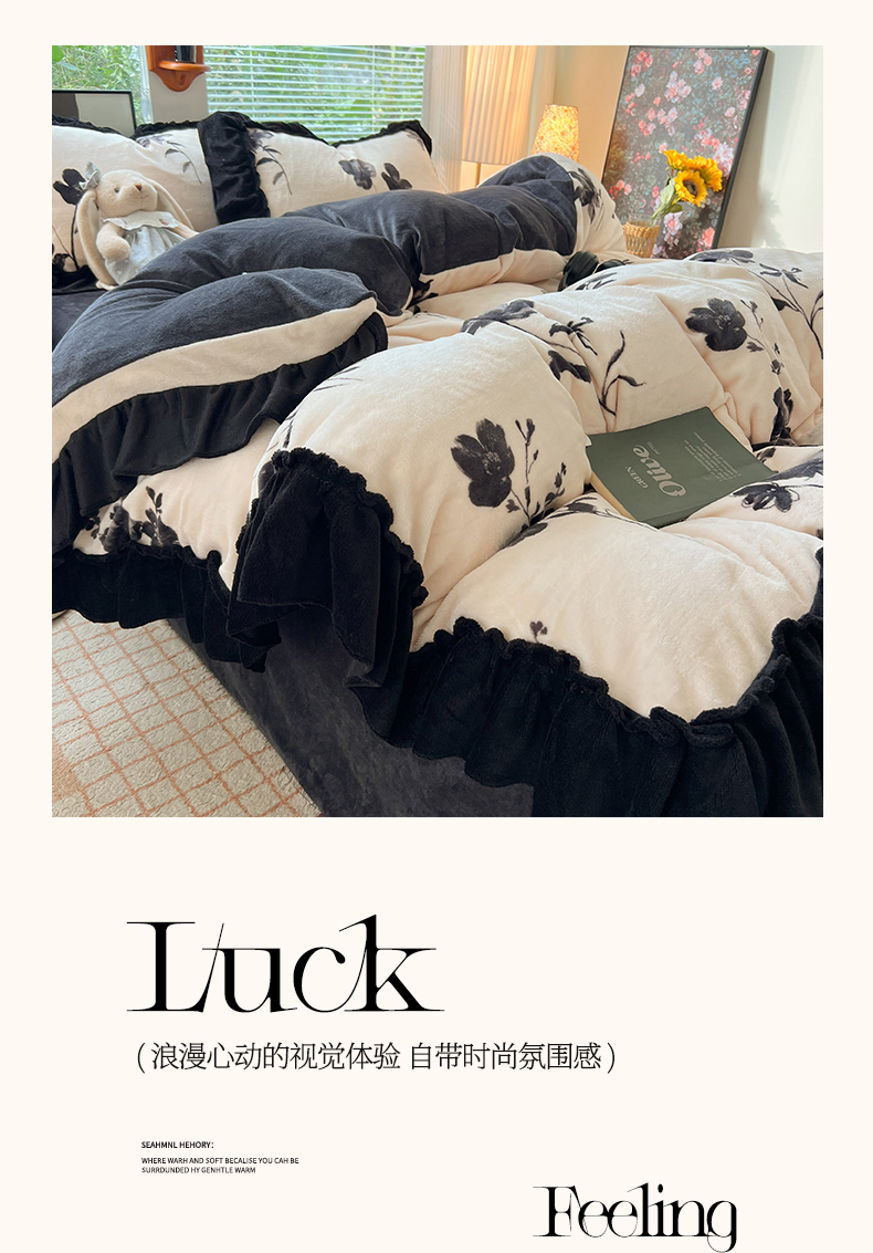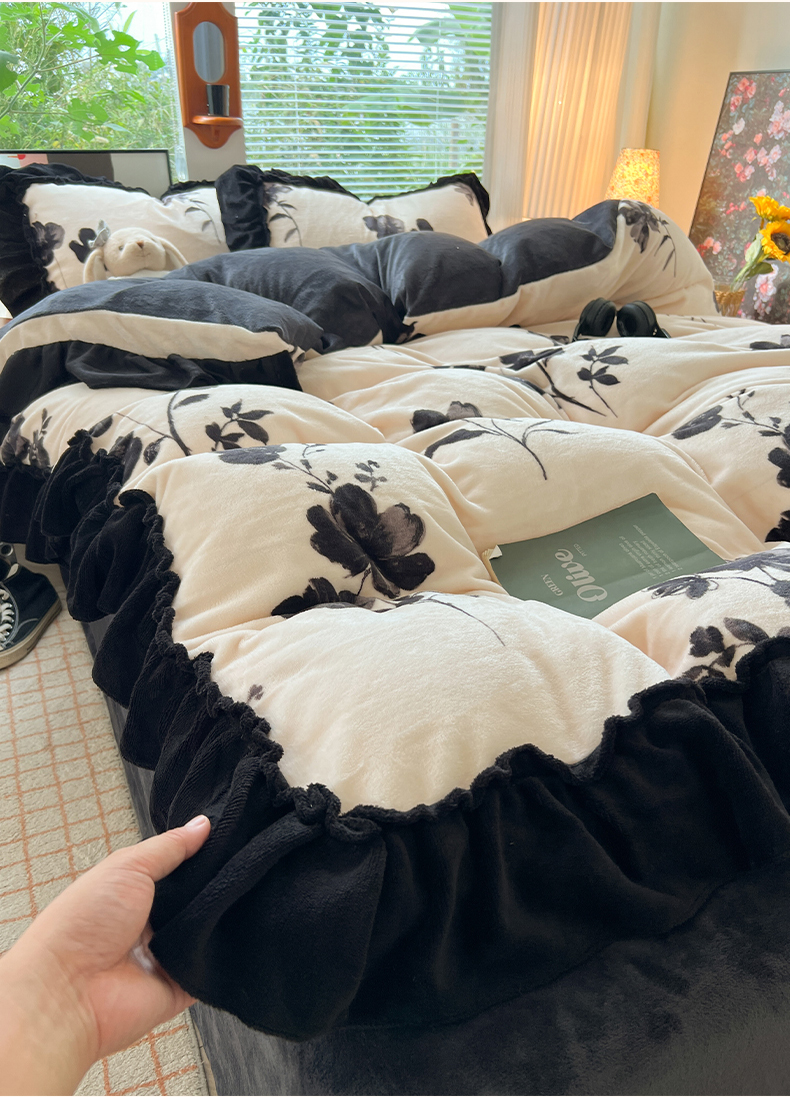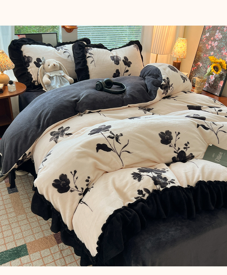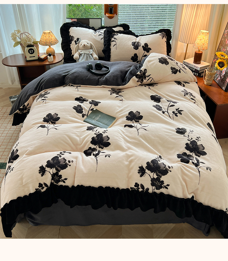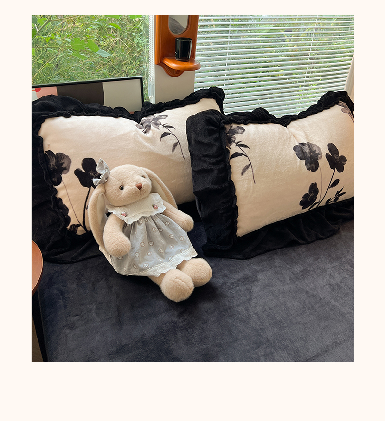 当前位置: 91家纺网 > 商品网购 > 床品套件 > 四件套 > 牛奶绒四件套 > 韩都家居 2025新款法式花边印花牛奶绒四件套 加州风情