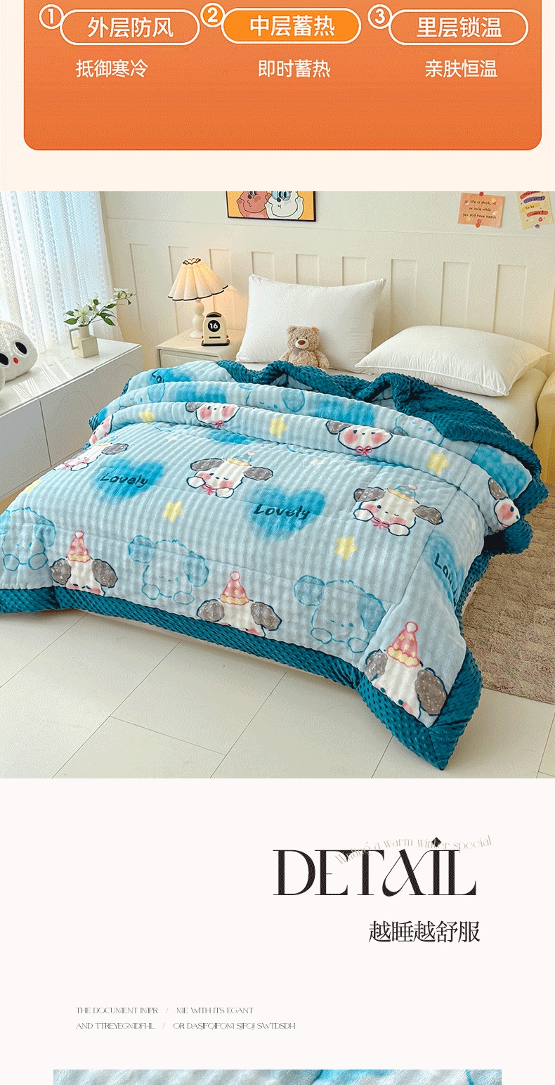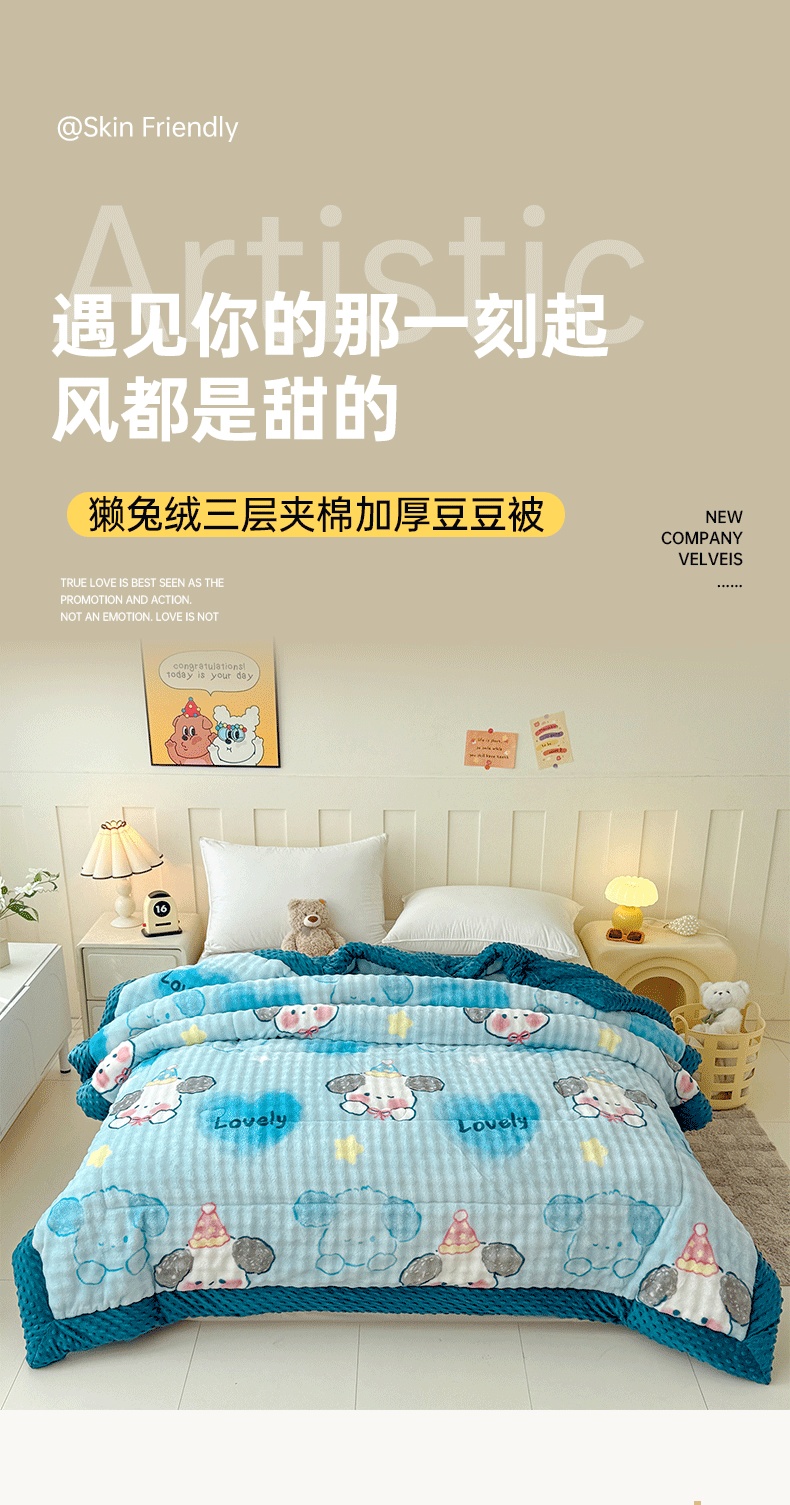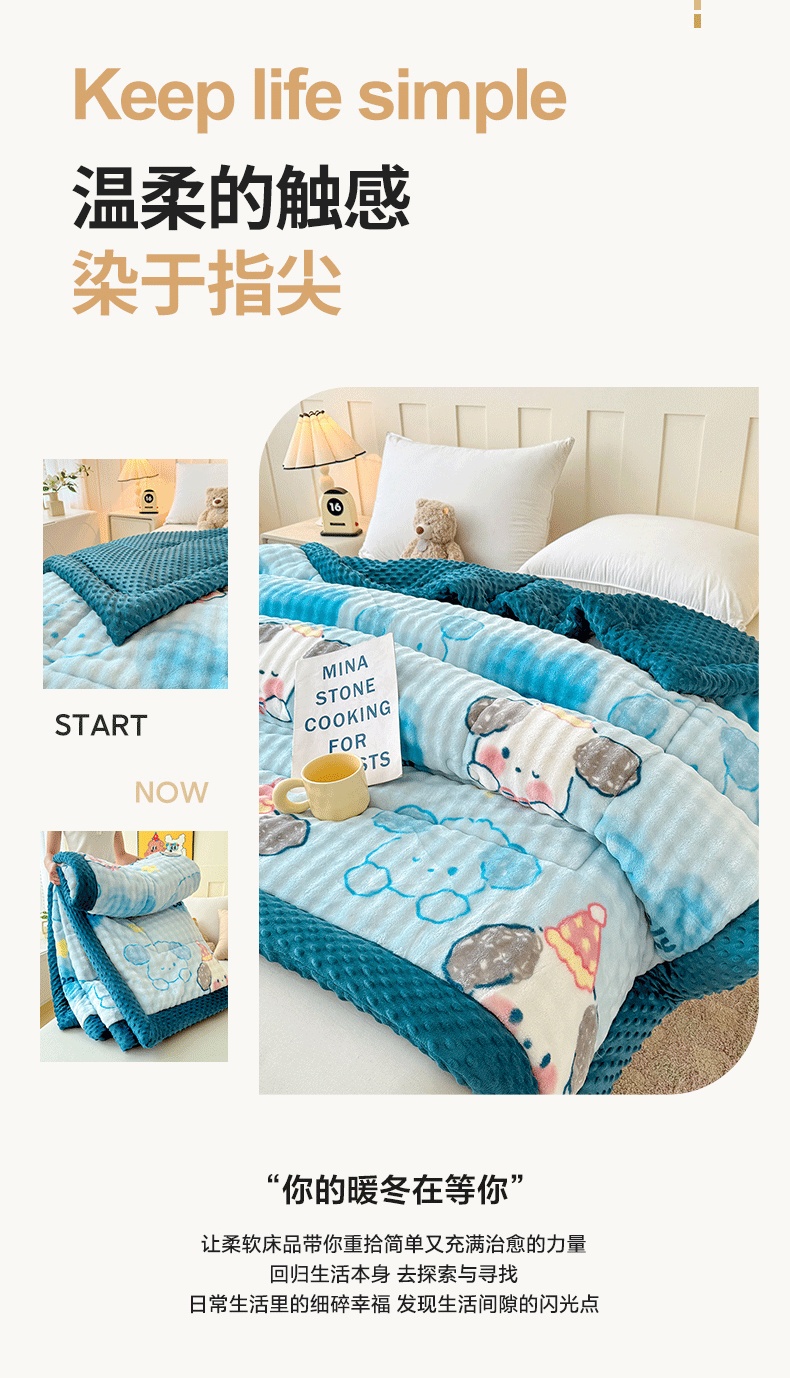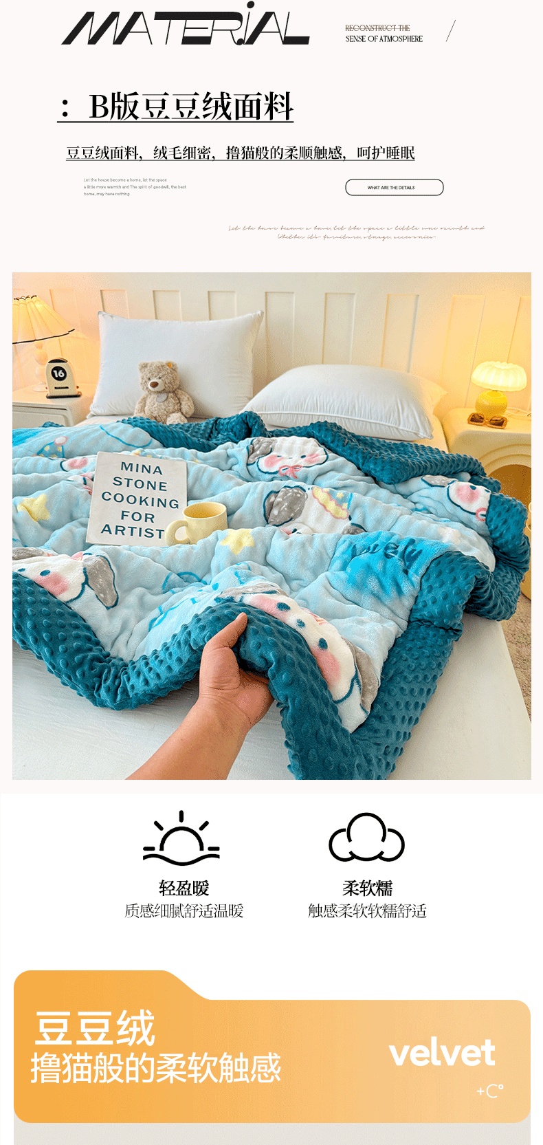 宜梦家居 2025新款獭兔绒三层夹棉加厚豆豆棉被子被芯 蓝狗