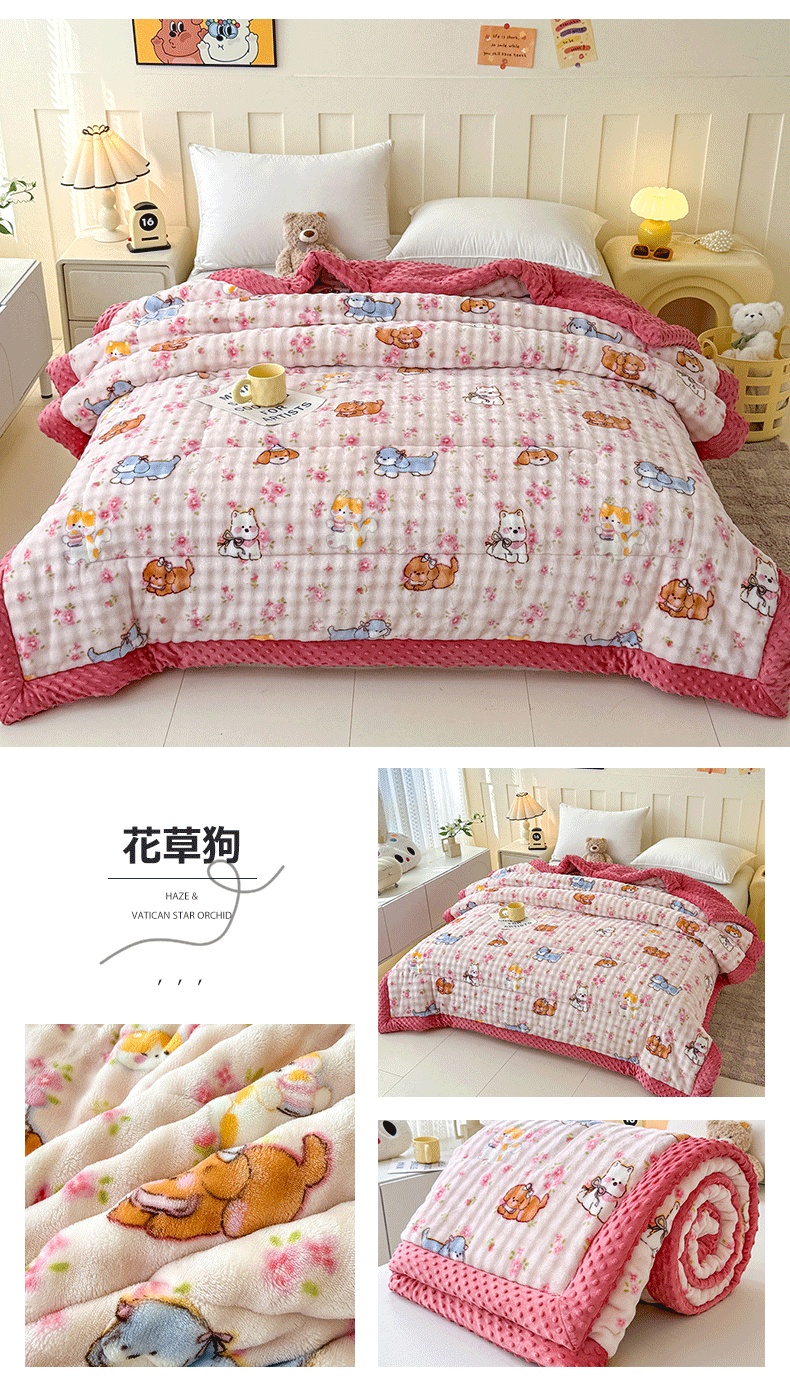 (总)宜梦家居 2025新款獭兔绒三层夹棉加厚豆豆棉被子被芯,抱抱熊,蛋糕猫,蝴蝶,花草狗,卡皮巴拉,蓝狗,蓝色动物,美乐蒂,奶牛,南瓜,星月,熊猫,郁金香,紫花