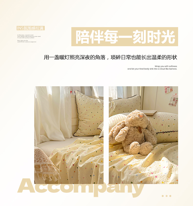 (总)优卡迪家纺馆 2025新款A类全棉镂空花边皱皱棉双层纱四件套,相见欢,花园小兔,蝶舞,繁花,好伙伴,花香浮梦,可比熊,蓝玫之约,流苏,奶油波点,沁园春,盛夏,晚晴,小精灵,长相思,紫薇