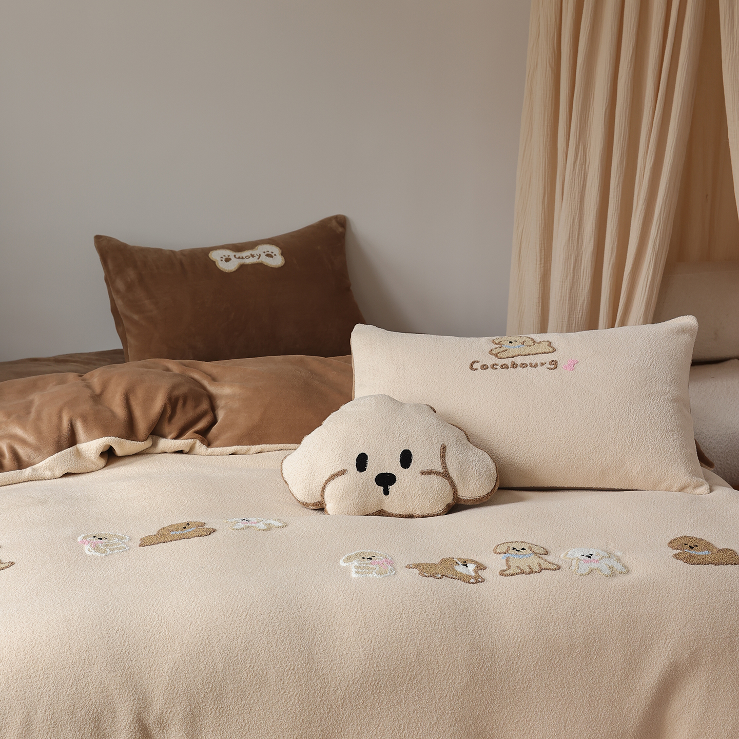 当前位置: 91家纺网 > 商品网购 > 床品套件 > 四件套 > 毛巾绣四件套 > 风向标家纺 2025新款A类全消光暖呢绒毛巾绣四件套-减龄家宠系列(风格二) 海魂衫小狗-蓝咖