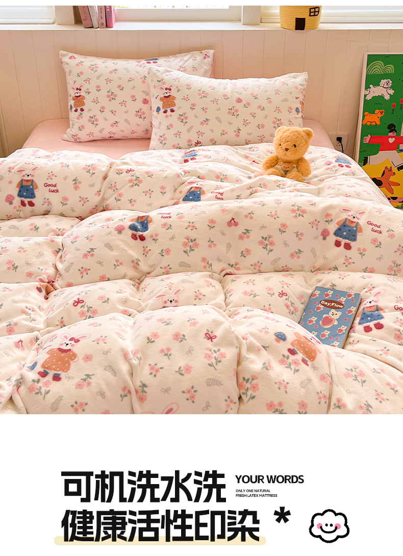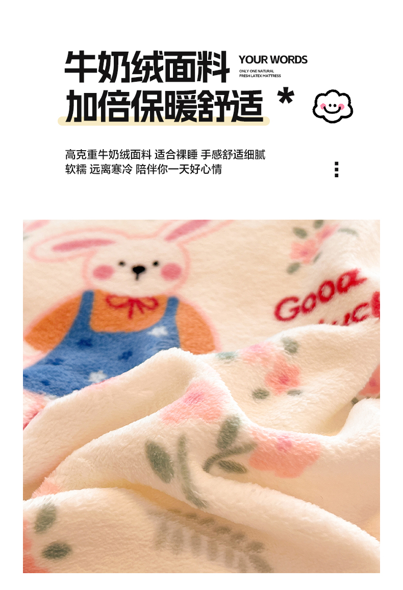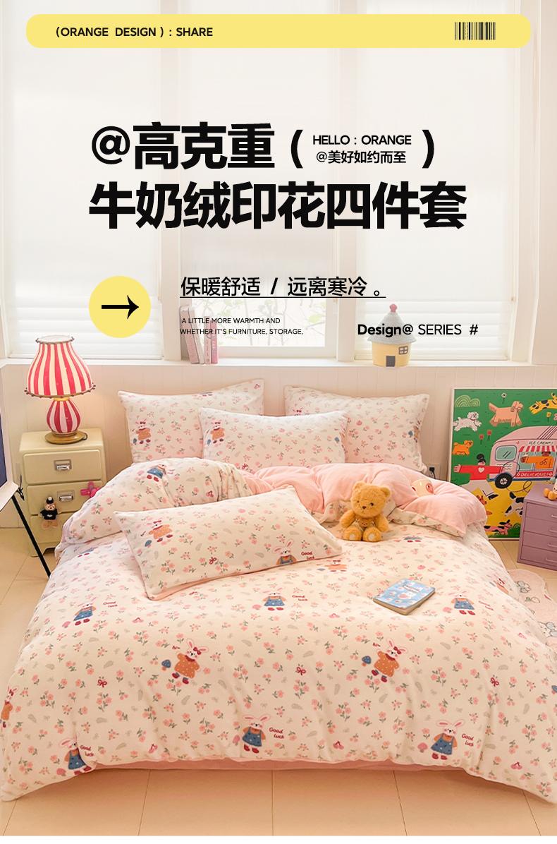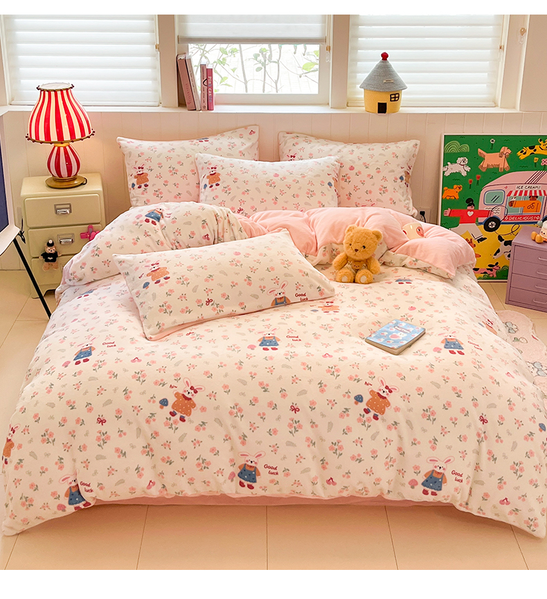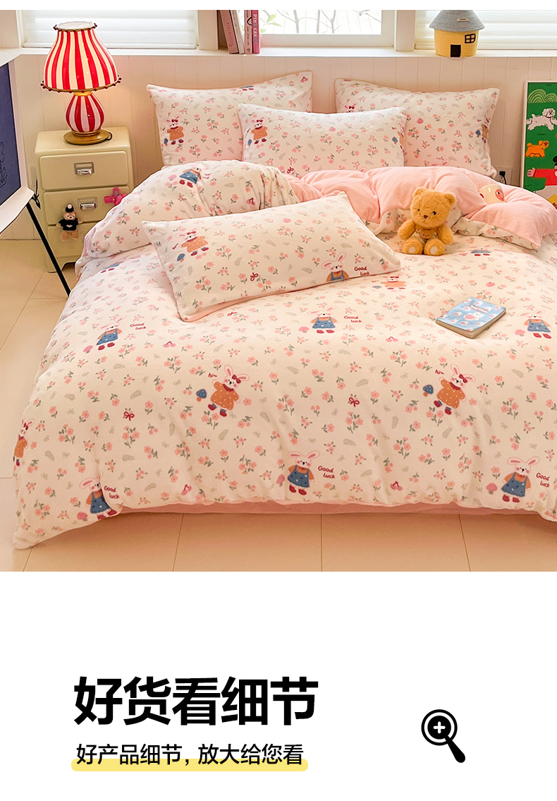 当前位置: 91家纺网 > 商品网购 > 床品套件 > 四件套 > 牛奶绒四件套 > 佳汐蓝家纺 2025新款190克高克重牛奶绒印花四件套 萌兔悠情+奶油粉
